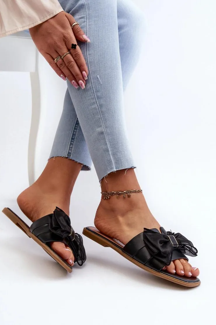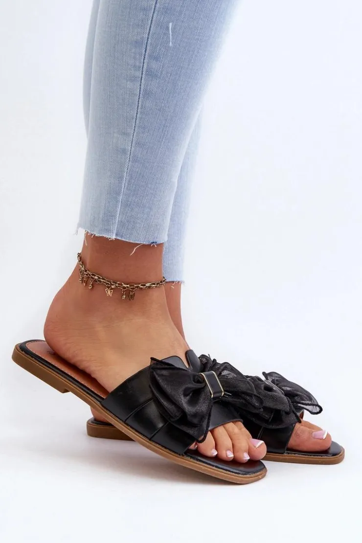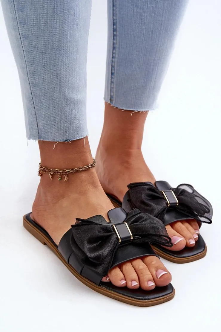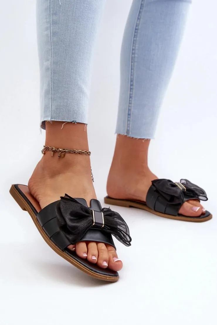 Klapki damskie z kokardą to doskonały wybór dla kobiet, które poszukują elegancji i wygody w jednym. Płaski obcas sprawia, że są nie tylko stylowe, ale także komfortowe podczas noszenia. Dodatkowo kokarda nadaje im subtelnego uroku. Idealnego zarówno na letnie spacery, jak i na bardziej formalne okazje. Przy wyborze rozmiaru prosimy sugerować się tabelą rozmiarów.