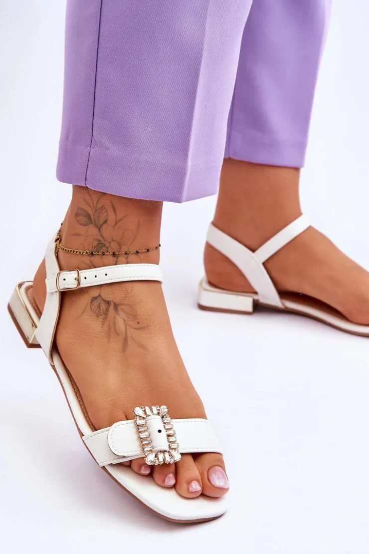 Damskie Boto Płaskie Sandały Na Złotym Obcasie Białe Mindley