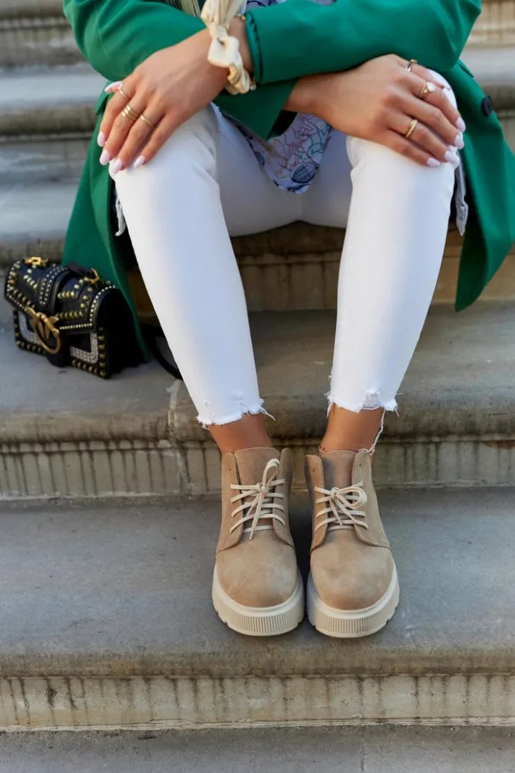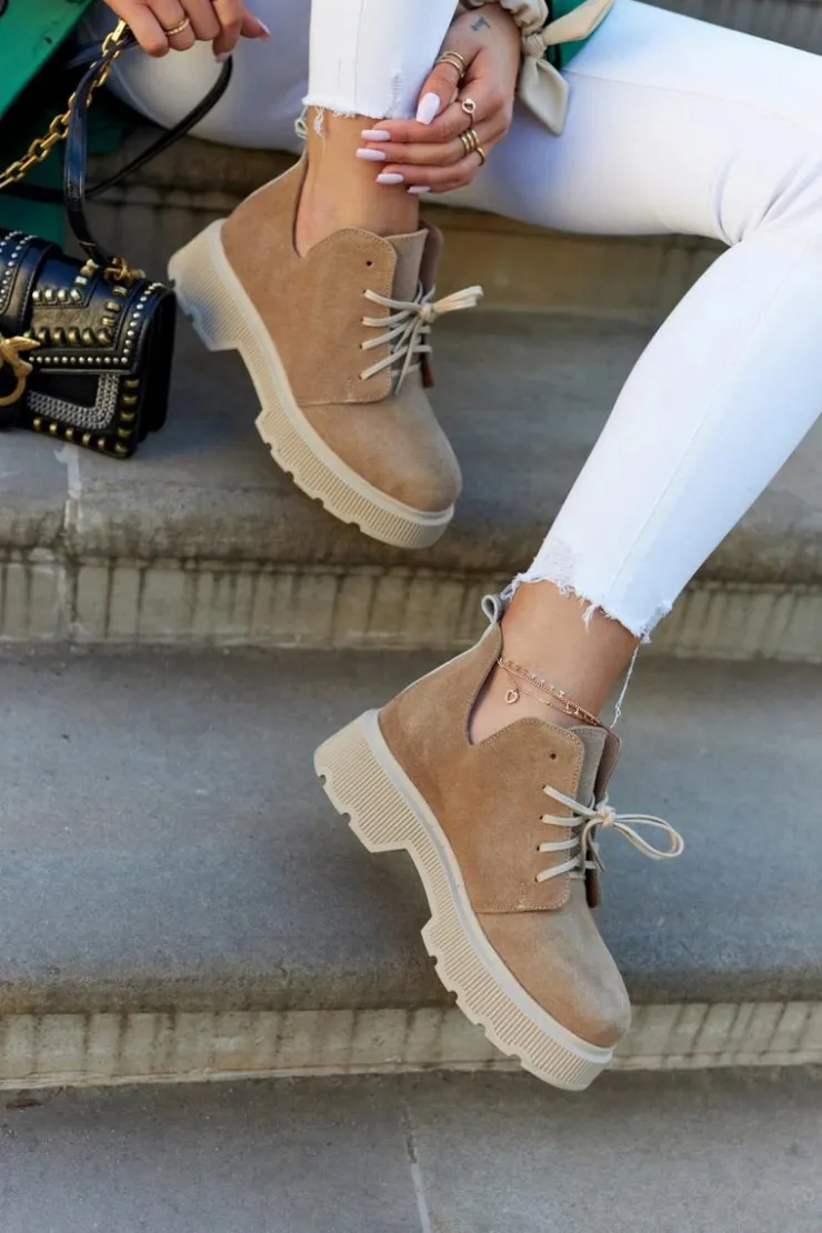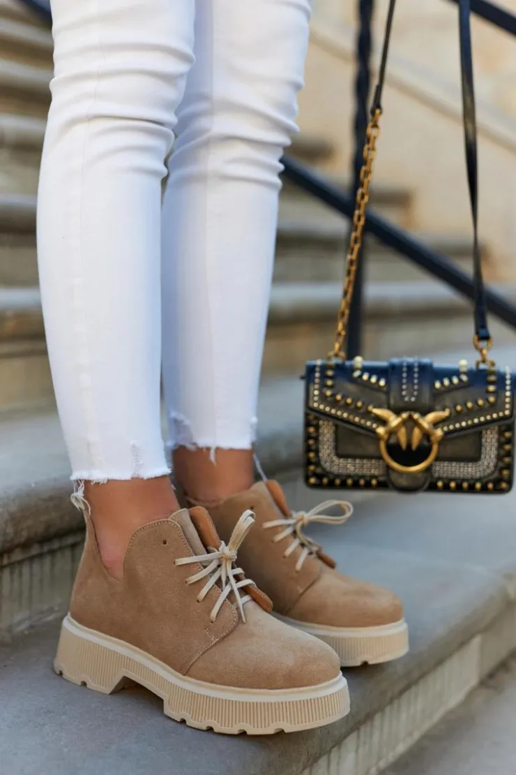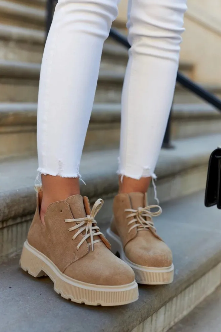 Piękne półbuty marki Nicole. Wykonane są ze skóry naturalnej. Klasyczna forma pasuje do wielu stylizacji. Buty dobrze dopasowują się do kształtu stopy, posiadają miękką wkładkę ze skóry naturalnej, zamszowej. Klasyczny, wiązany model. Posiadają usztywniany zapiętek. Masywna podeszwa świetnie będzie izolować od zimna. Przy wyborze rozmiaru prosimy sugerować się tabelą rozmiarów.