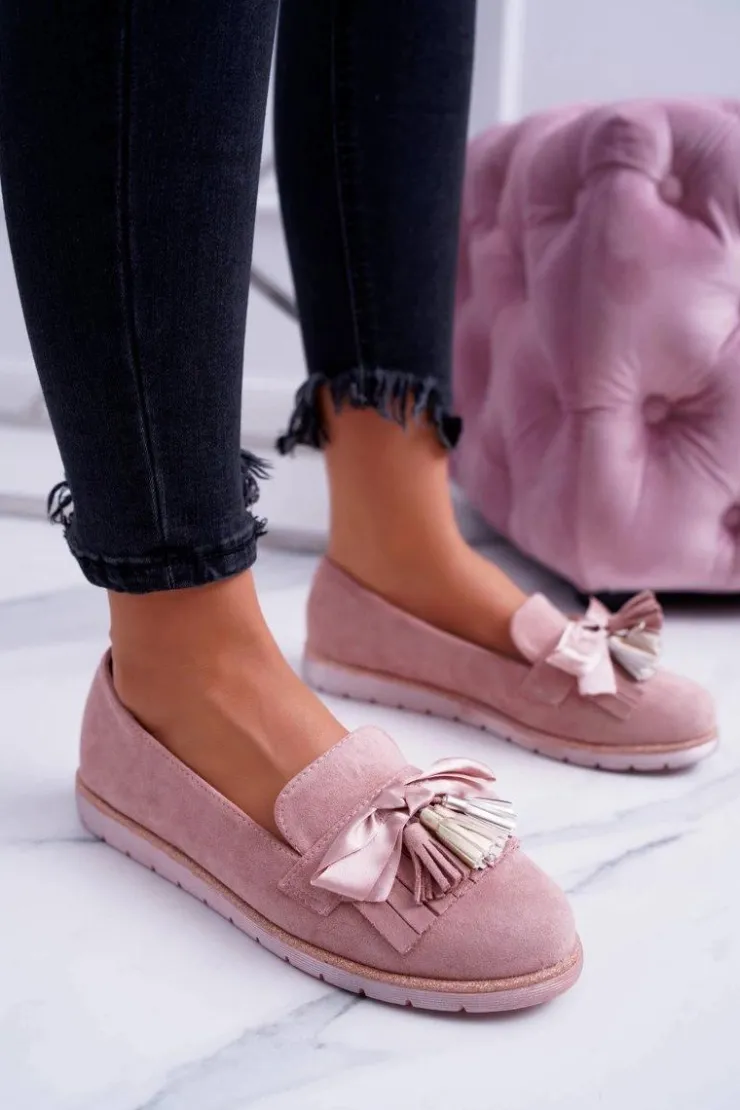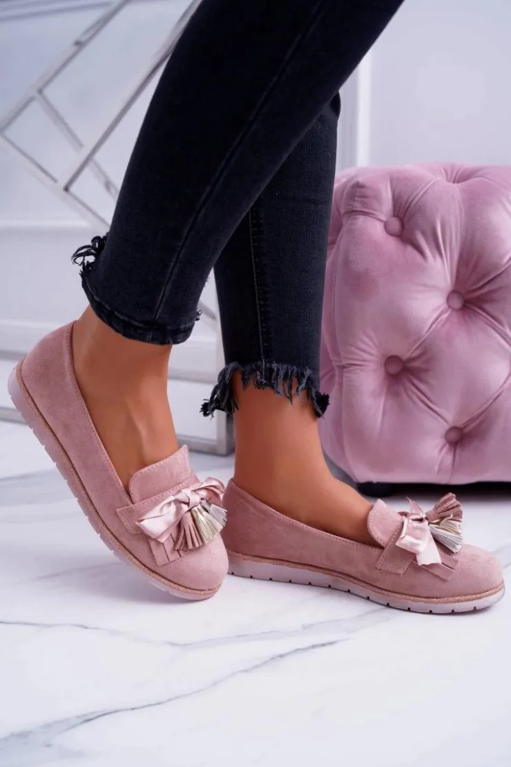 Damskie Boto Różowe Zamszowe Mokasyny Z Frędzlami Ermire