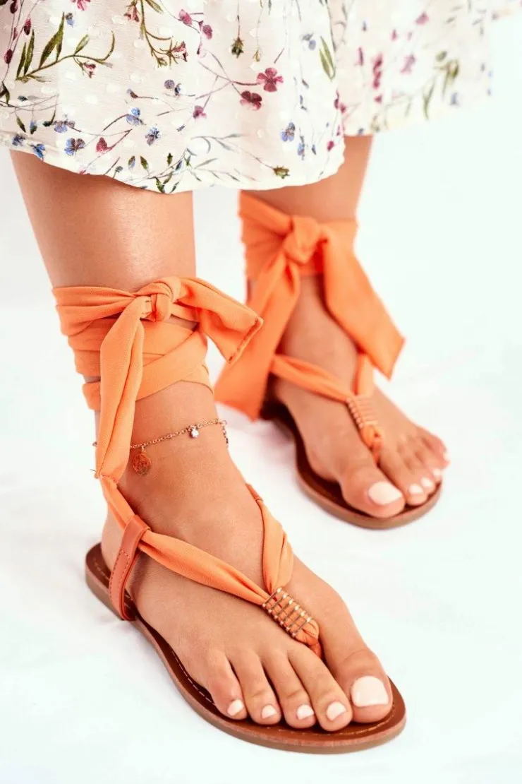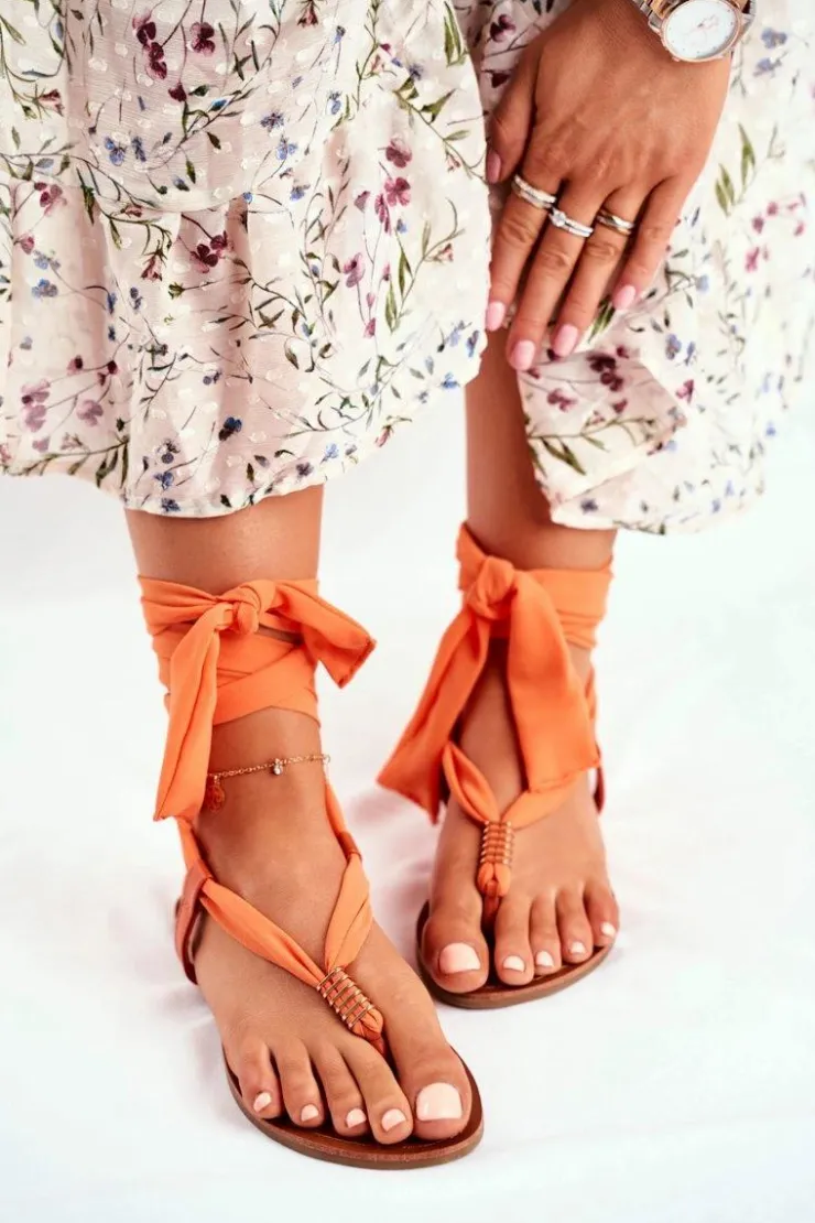 Damskie Boto Sandałki Damskie Japonki Wiązane Pomarańczowe Derryl