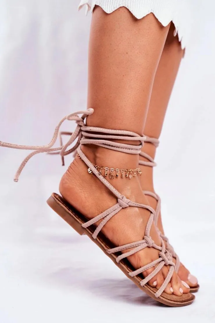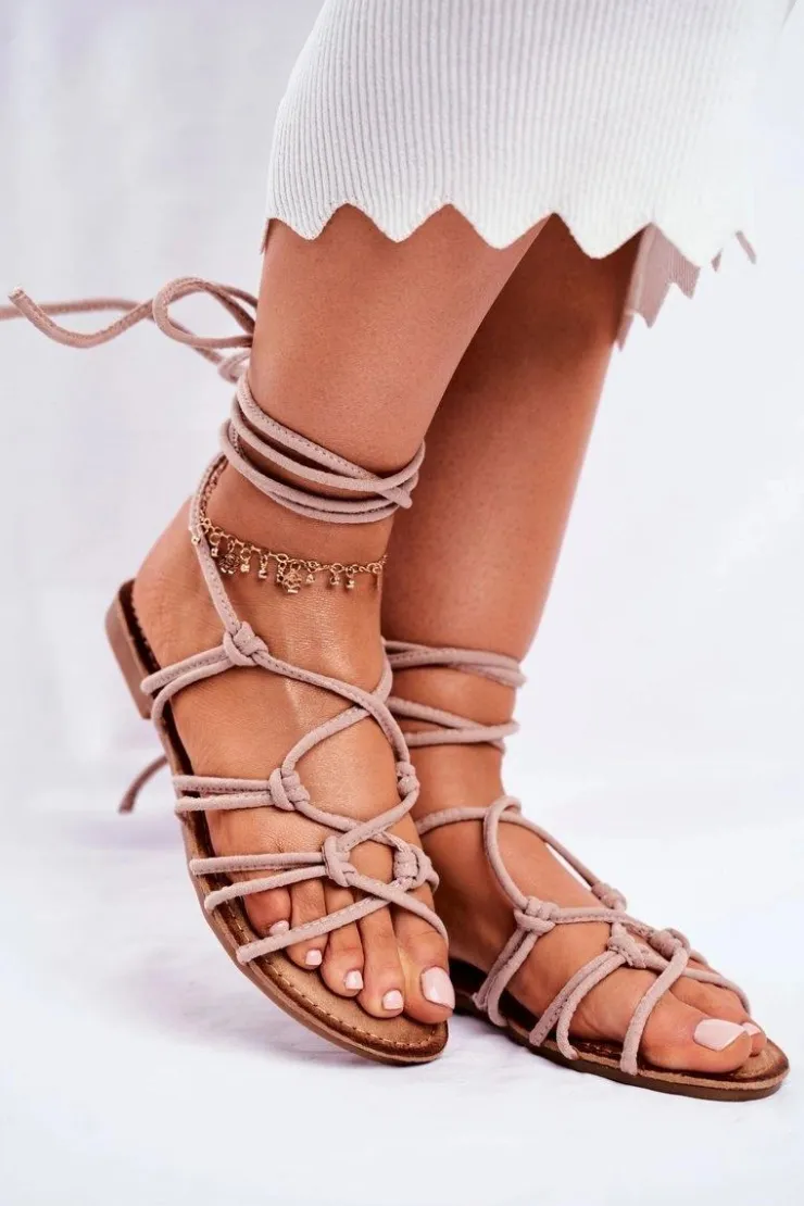 Damskie Boto Sandałki Damskie Wiązane Beżowe Negros