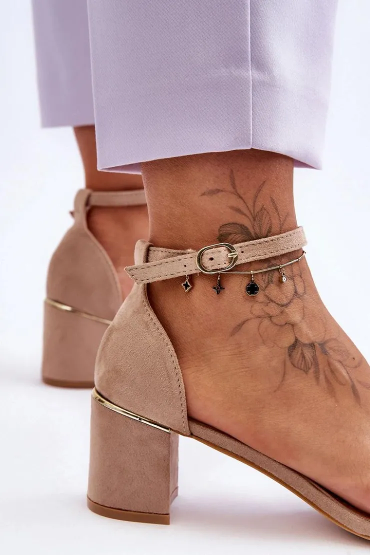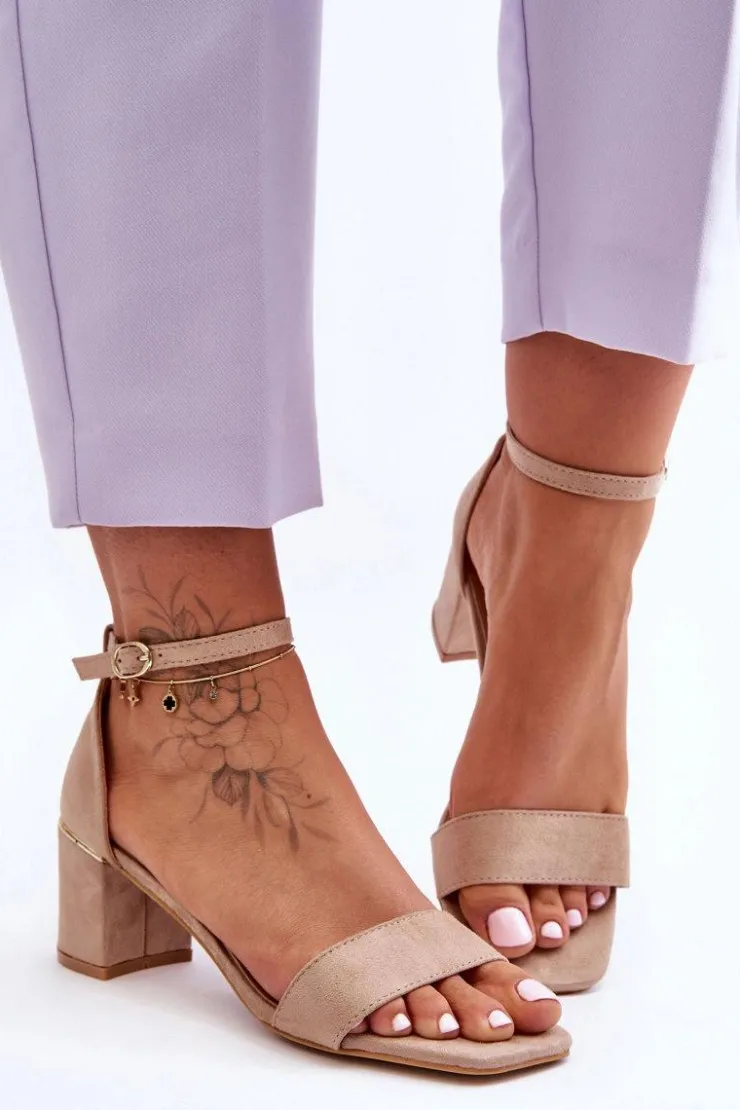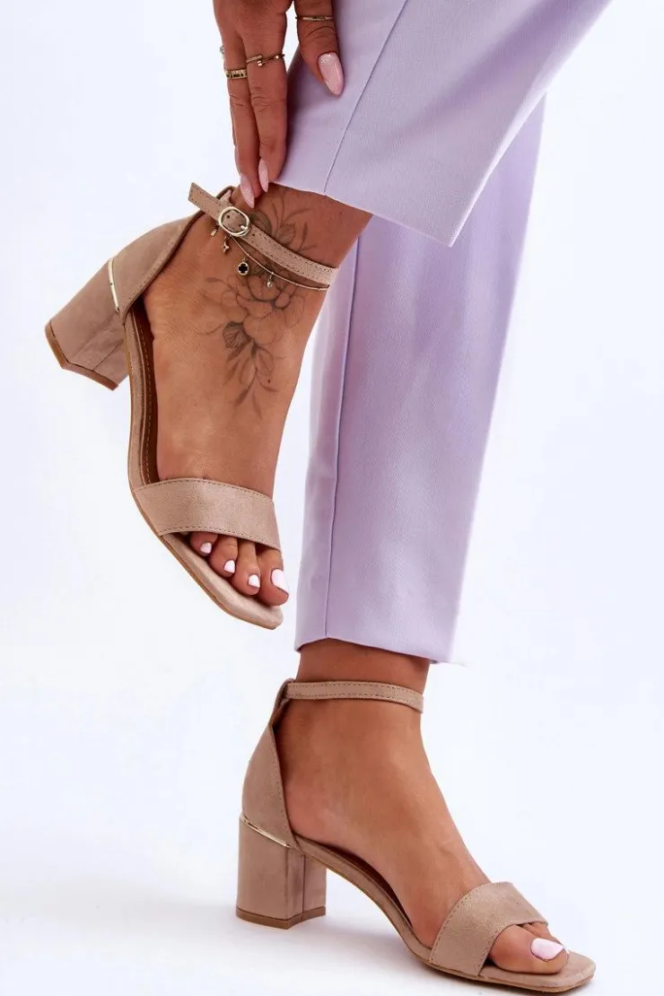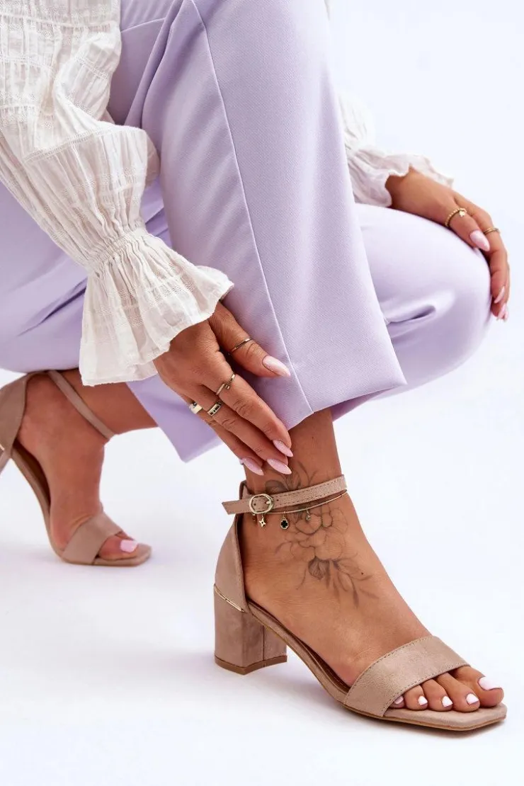 Te sandałki powinny znaleźć się w Twojej szafie! Niezwykle wygodny i przewiewny model. Zostały wykonane z eko zamszu. Posiadają odkryty, kwadratowy nosek. Osadzone na niewysokim obcasie w postaci słupka, dodatkowo ozdobionym lustrzanym elementem. Idealny model na różnego rodzaju uroczystości w upalne dni! Przy wyborze rozmiaru prosimy sugerować się tabelą rozmiarów.