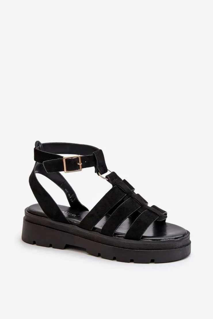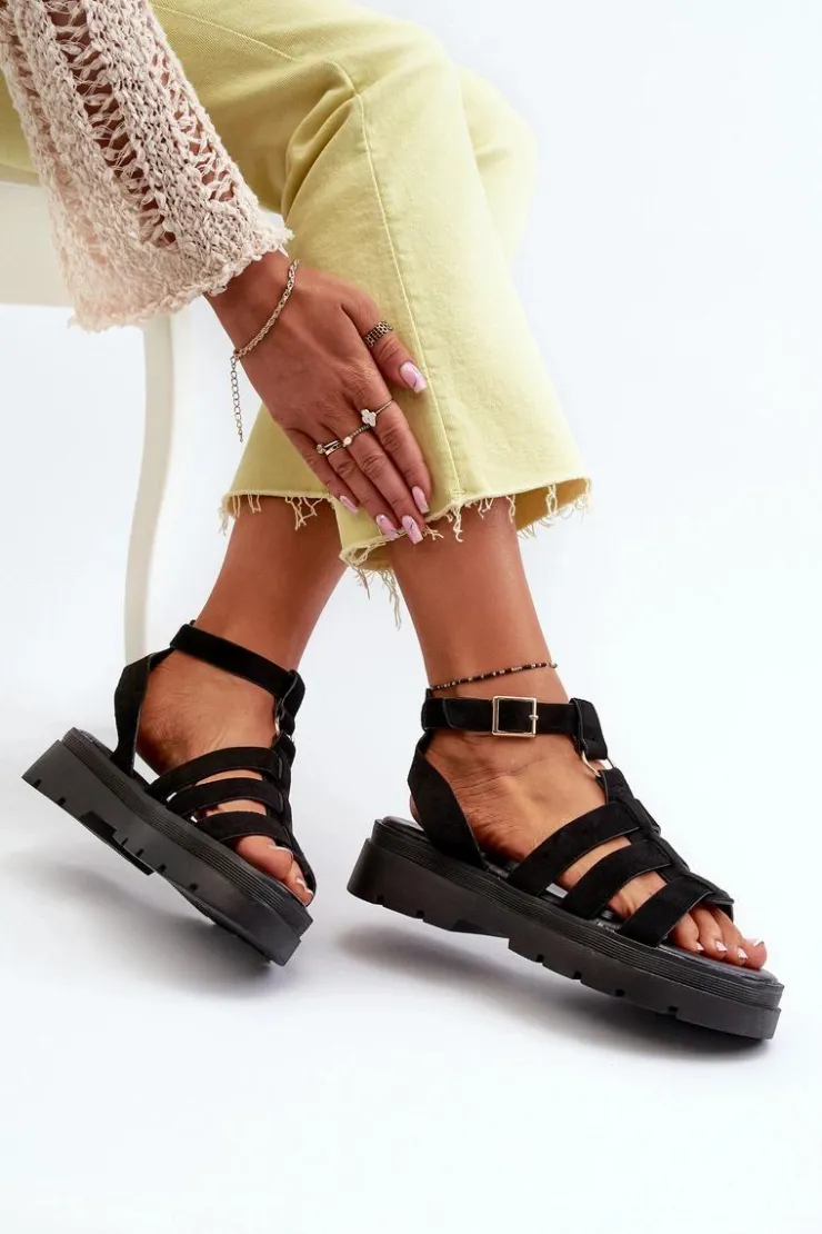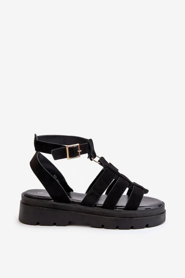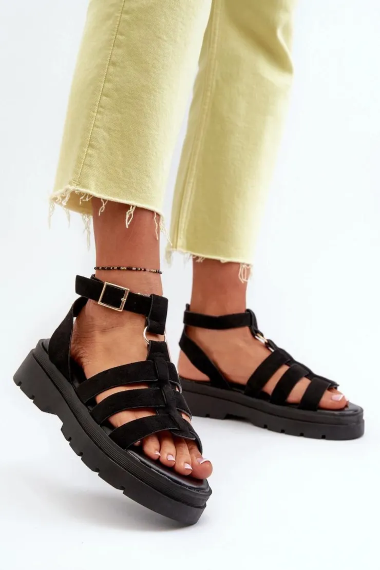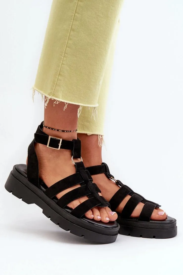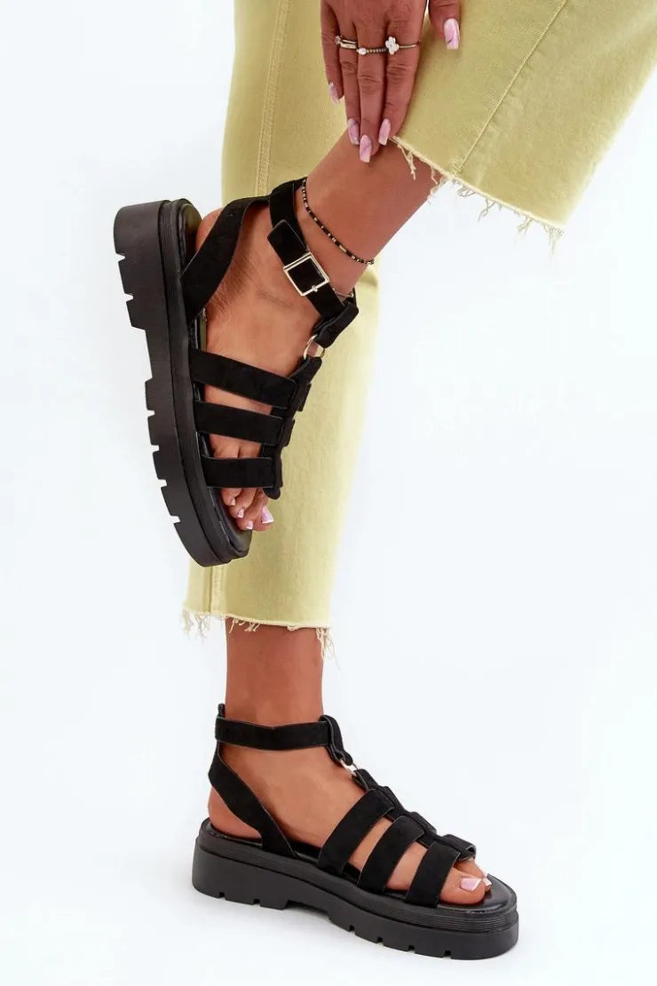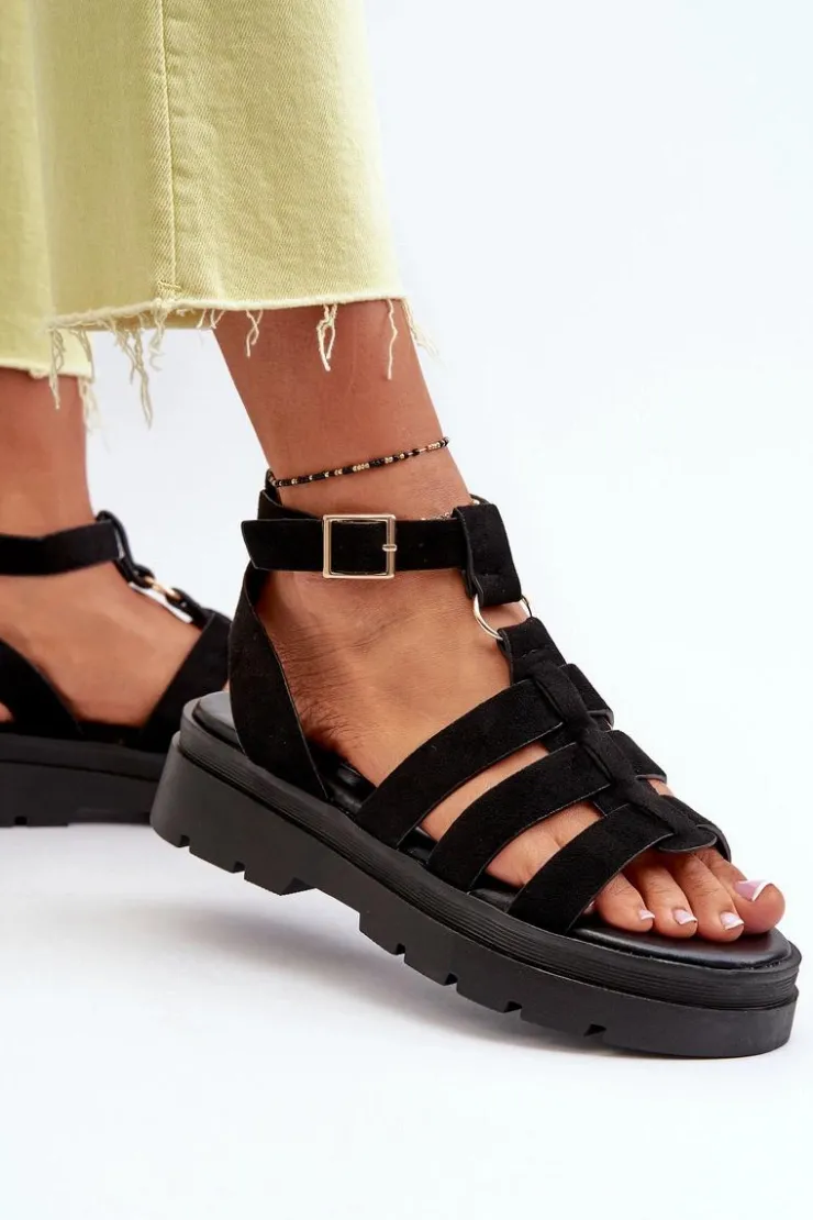 Damskie Boto Sandały Damskie Gladiatorki Z Eko Zamszu Czarne Dorameia