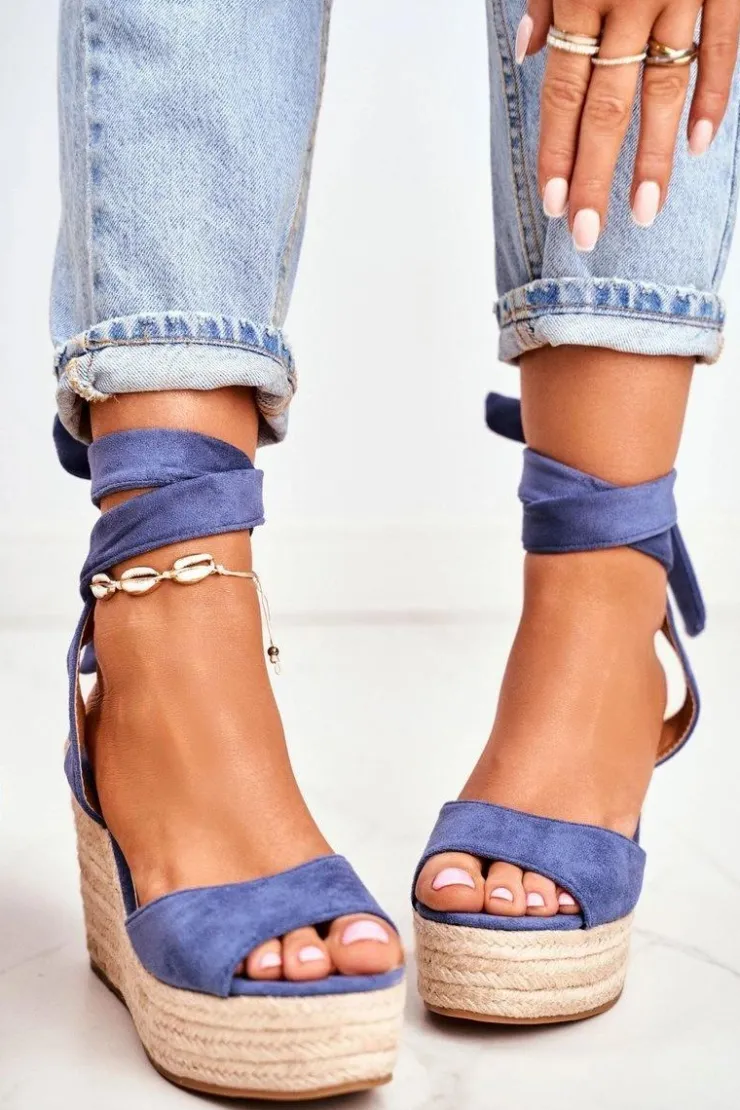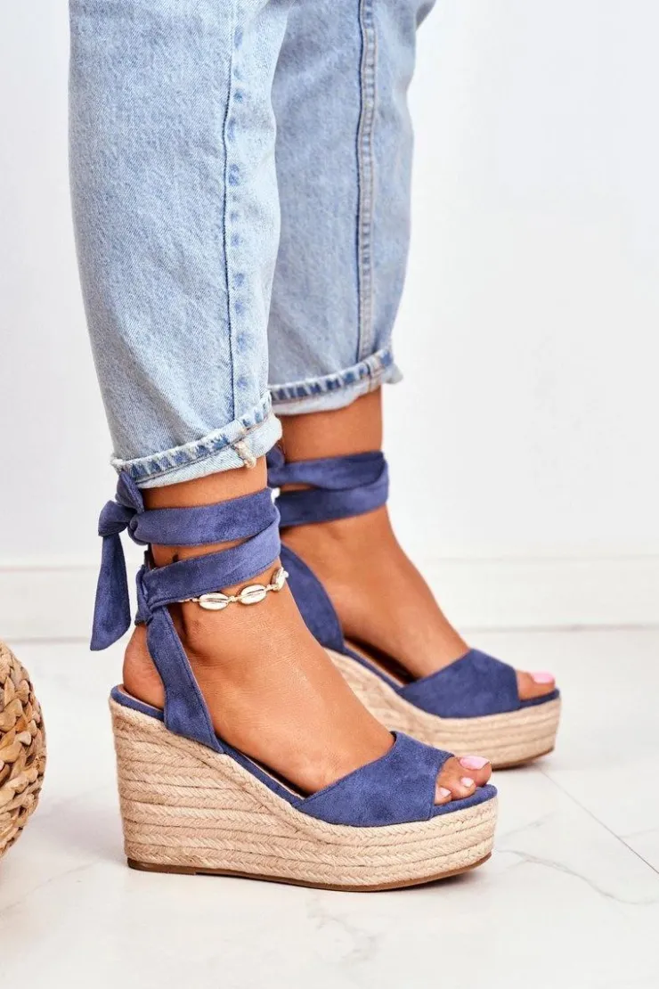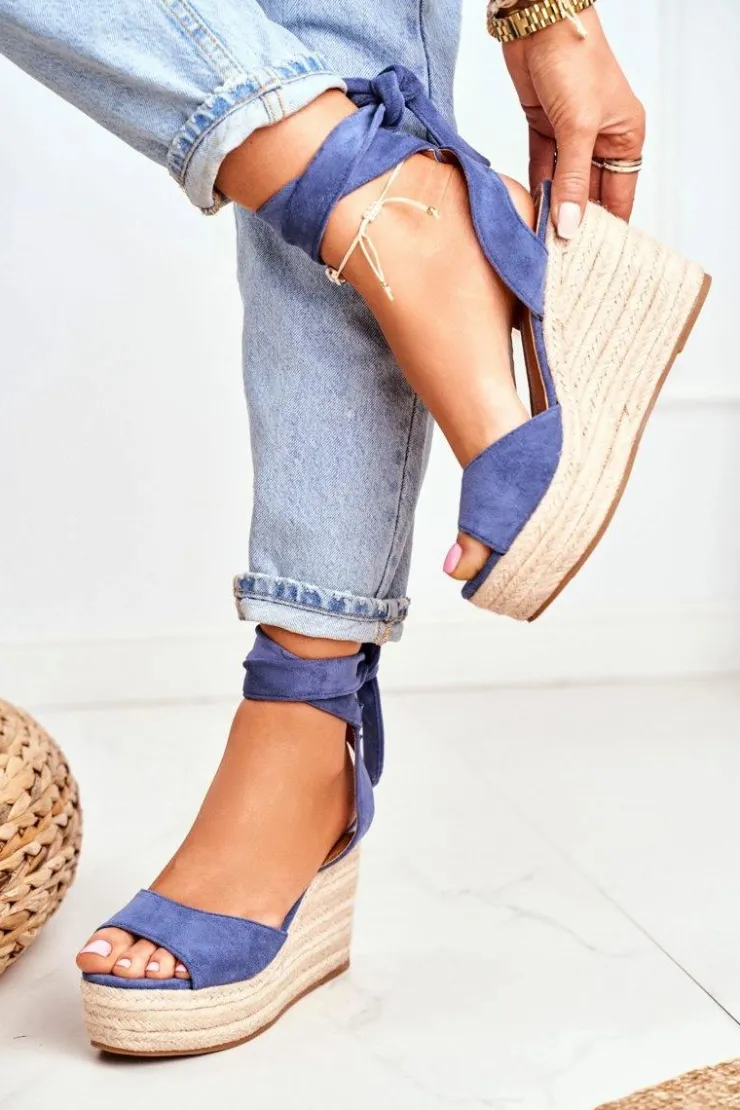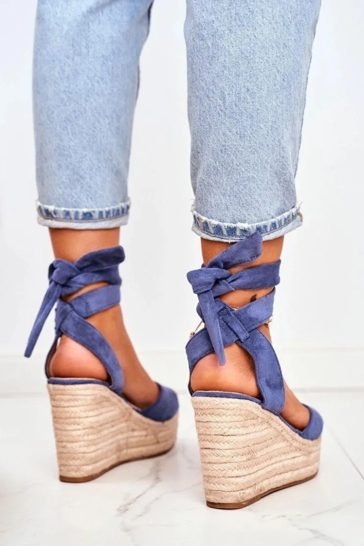 Damskie Boto Sandały Damskie Na Koturnie Espadryle Niebieskie Ollie