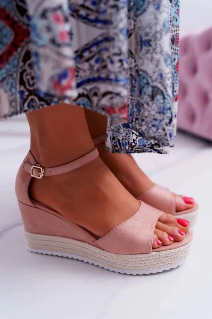 Damskie Boto Sandały Damskie Na Koturnie Platformie Zamszowe Różowe Delima