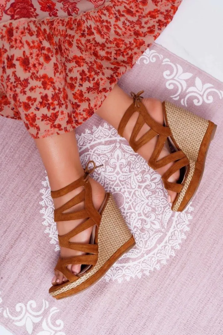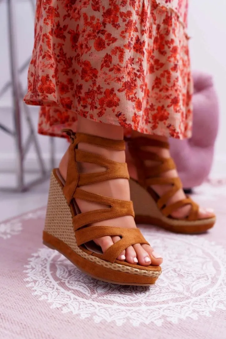 Damskie Boto Sandały Damskie Na Koturnie Sznurek Camel Liluena