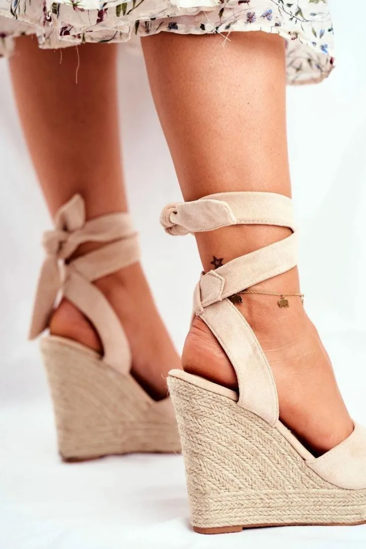 Damskie Boto Sandały Damskie Na Koturnie Wiązane Beżowe Belleza