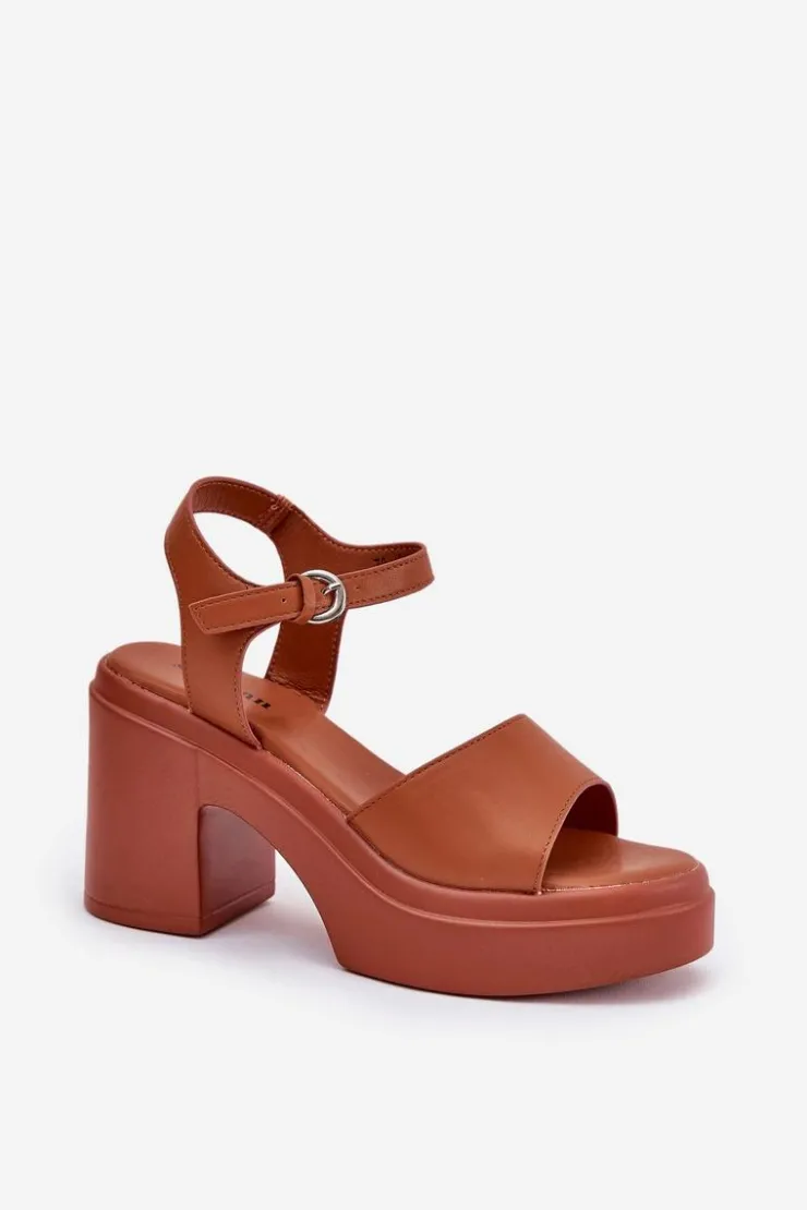 Sandały damskie wykonane ze skóry ekologicznej. Platforma oraz masywny obcas w postaci słupka dodają pewności kroku, jednocześnie zapewniając stabilność. Zapinane wokół kostki na sprzączkę z regulowanym paskiem. Doskonałe na wiele różnych okazji! Przy wyborze rozmiaru prosimy sugerować się tabelą rozmiarów.