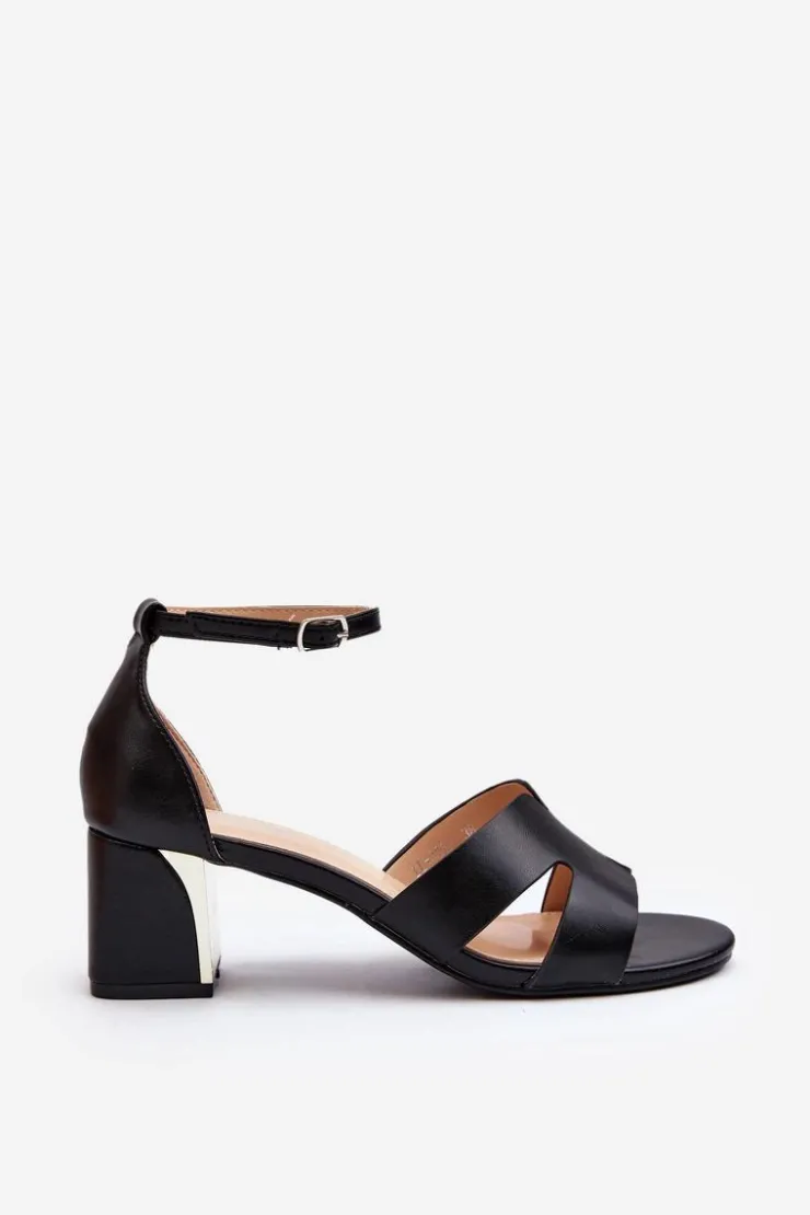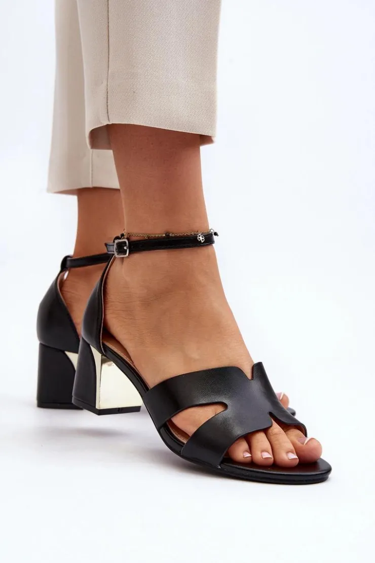 Sandały damskie osadzone na obcasie w postaci klocka z lustrzanym elementem. Zapinane na regulowany pasek ze sprzączką, łatwo dopasujesz je do swojej stopy, co zapewni dodatkowy komfort. Ten model to świetna propozycja dla każdej kobiety, która ceni sobie zarówno komfort, jak i styl w letnich stylizacjach! Przy wyborze rozmiaru prosimy sugerować się tabelą rozmiarów.