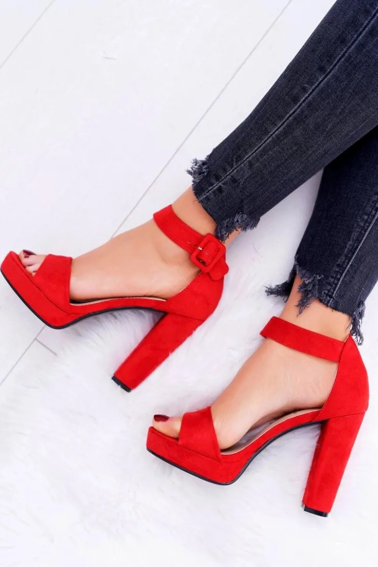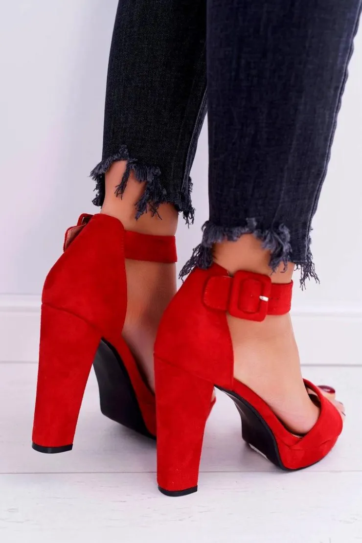 Damskie Boto Sandały Damskie Na Obcasie Słupku Zamsz Czerwone ShakeUp