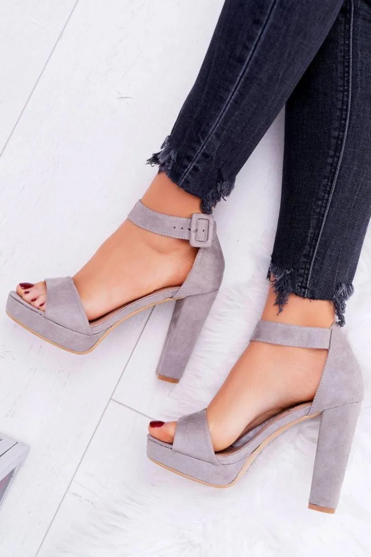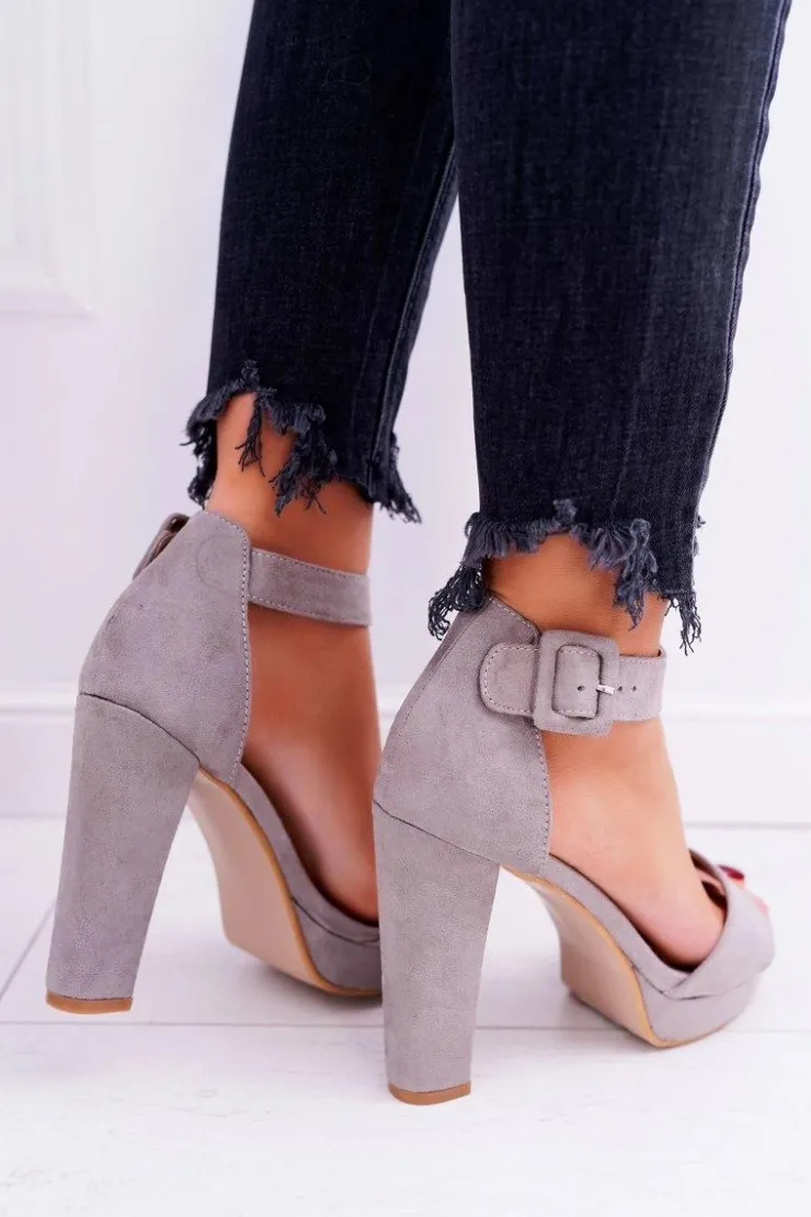 Damskie Boto Sandały Damskie Na Obcasie Słupku Zamsz Szare ShakeUp