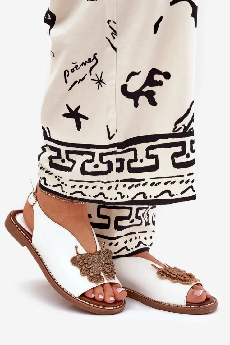 Damskie Boto Sandały Damskie Na Płaskim Obcasie Z Ozdobą Białe Setorina