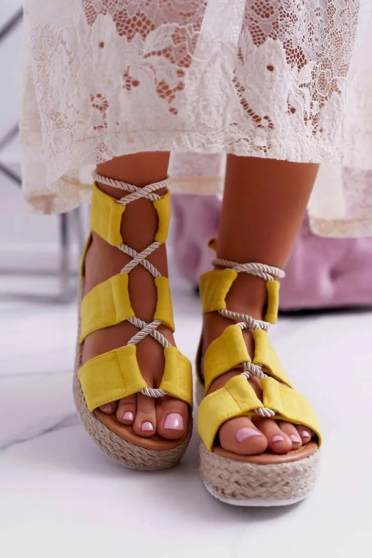 Damskie Boto Sandały Damskie na Platformie Zamszowe Żółte Ergola