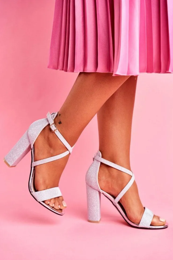 Damskie Boto Sandały Damskie Na Słupku Brokatowe Srebrne Vivi