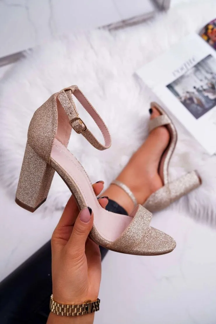 Wygodne sandały to marzenie każdej kobiety! Wysoki słupek i dobrze wyprofilowana podeszwa zapewni Ci gwarancje dobrego samopoczucia oraz gustownego wyglądu. Piękne kolory oraz brokat z którego zostały wykonane z pewnością sprawi, że zostaniesz zauważona! Sandałki zapinane na pasek wokół kostki. Przy wyborze rozmiaru prosimy sugerować się tabelą rozmiarów, która dostępna jest po najechaniu bądź kliknięciu w dany rozmiar.