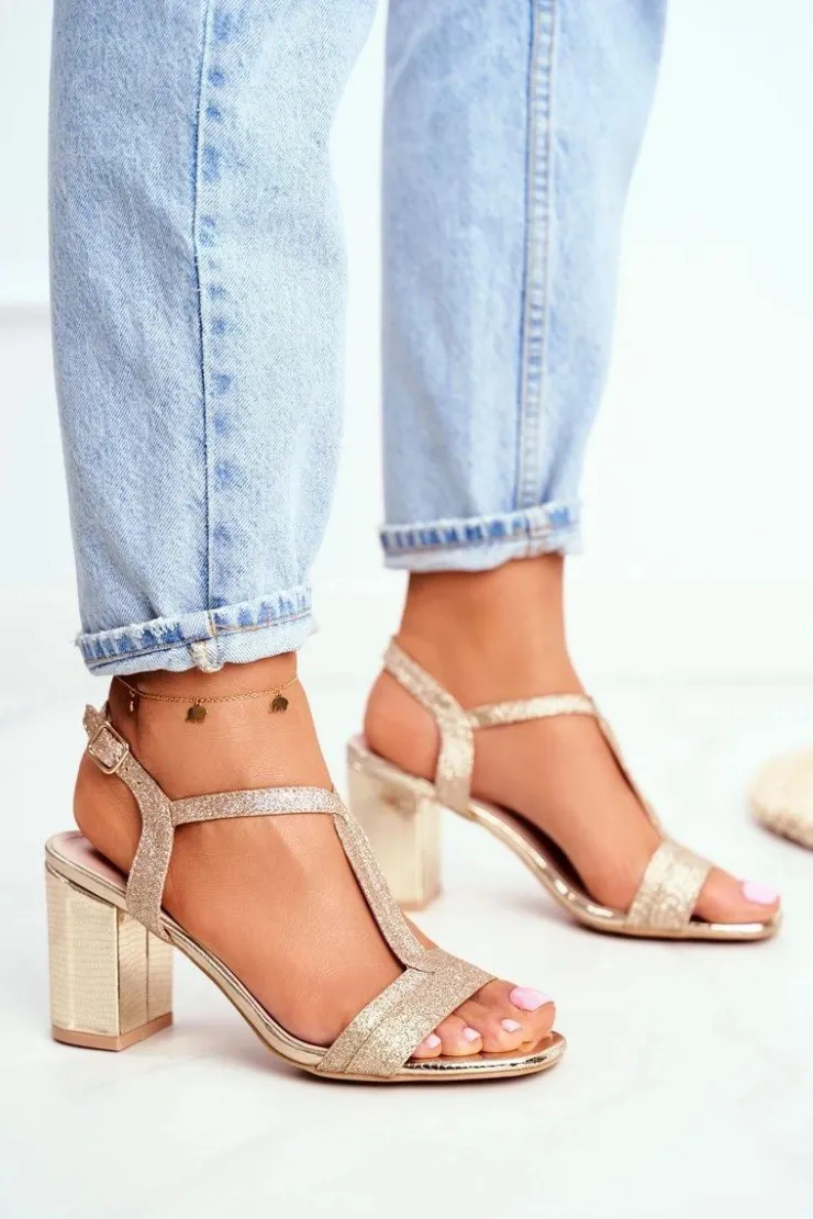 Damskie Boto Sandały Damskie Na Słupku Brokatowe Złote Perfecto