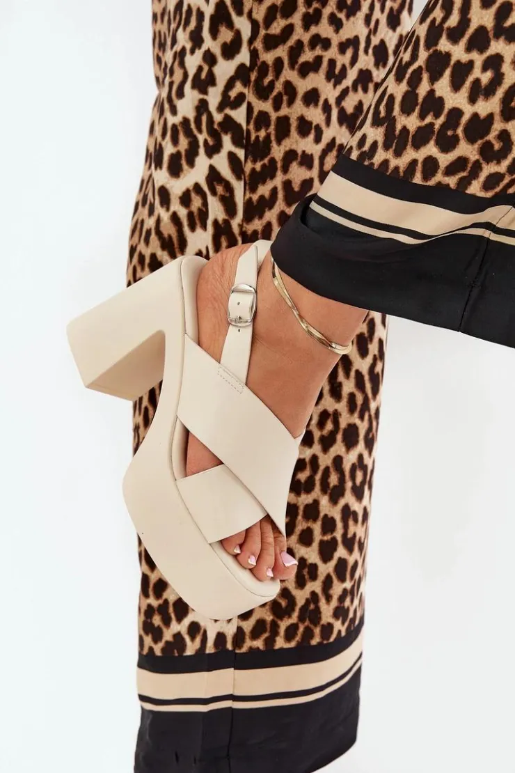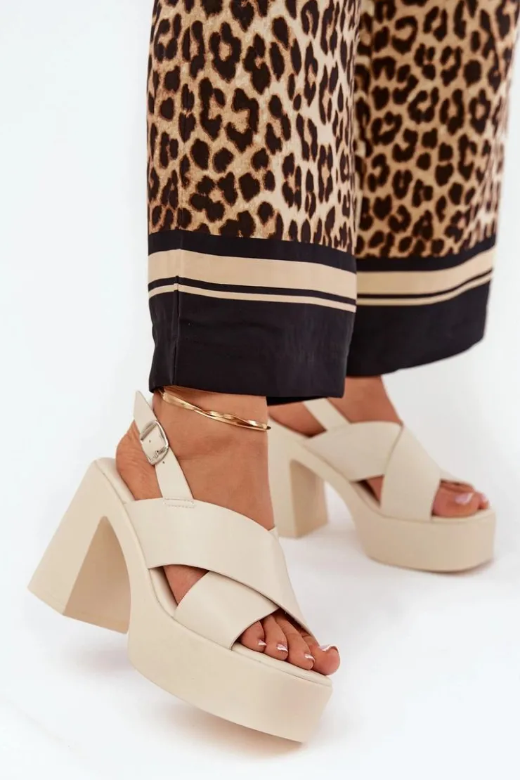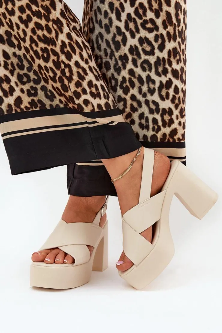 Lekkie sandały damskie z eko skóry, osadzone na masywnym słupku i platformie. Z przodu znajdują się dwa przeplatające się szerokie paski, które dodają modnego charakteru. Zapinane na sprzączkę, umożliwiają idealne dopasowanie do stopy. Miękka wkładka zapewnia komfort przez cały dzień. Idealne na letnie dni, te sandały będą doskonałym wyborem do różnych stylizacji, łącząc elegancję z funkcjonalnością. Przy wyborze rozmiaru prosimy sugerować się tabelą rozmiarów.