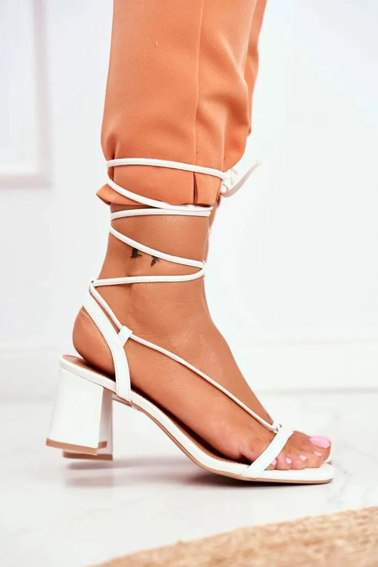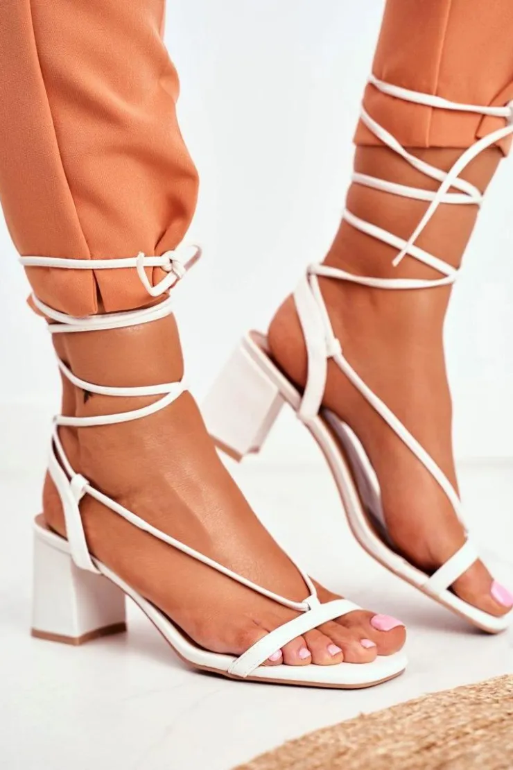 Damskie Boto Sandały Damskie Na Słupku Wiązane Białe Morning