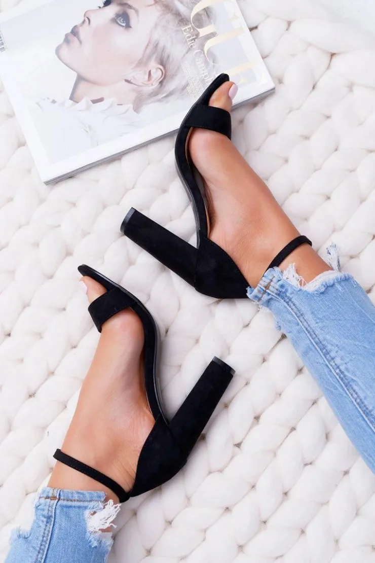 Damskie Boto Sandały Damskie Na Słupku Zamszowe Czarne Anastasie