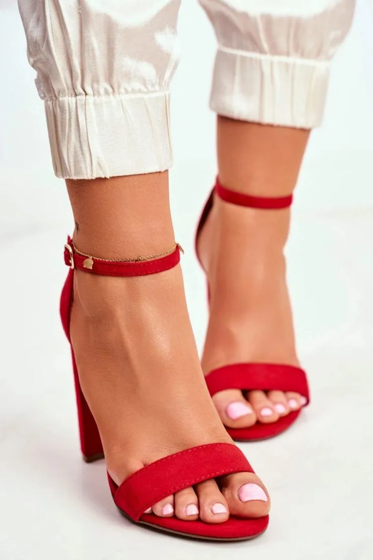 Damskie Boto Sandały Damskie Na Słupku Zamszowe Czerwone Anastasie