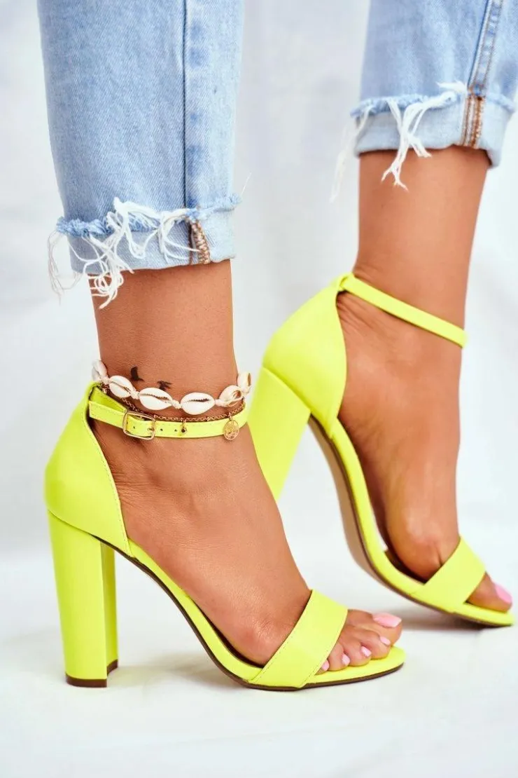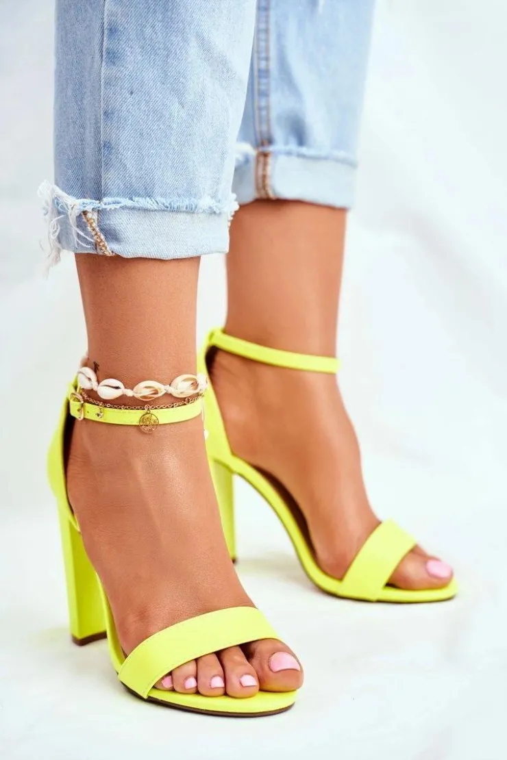 Damskie Boto Sandały Damskie Na Słupku Żółte Neon Anastasie