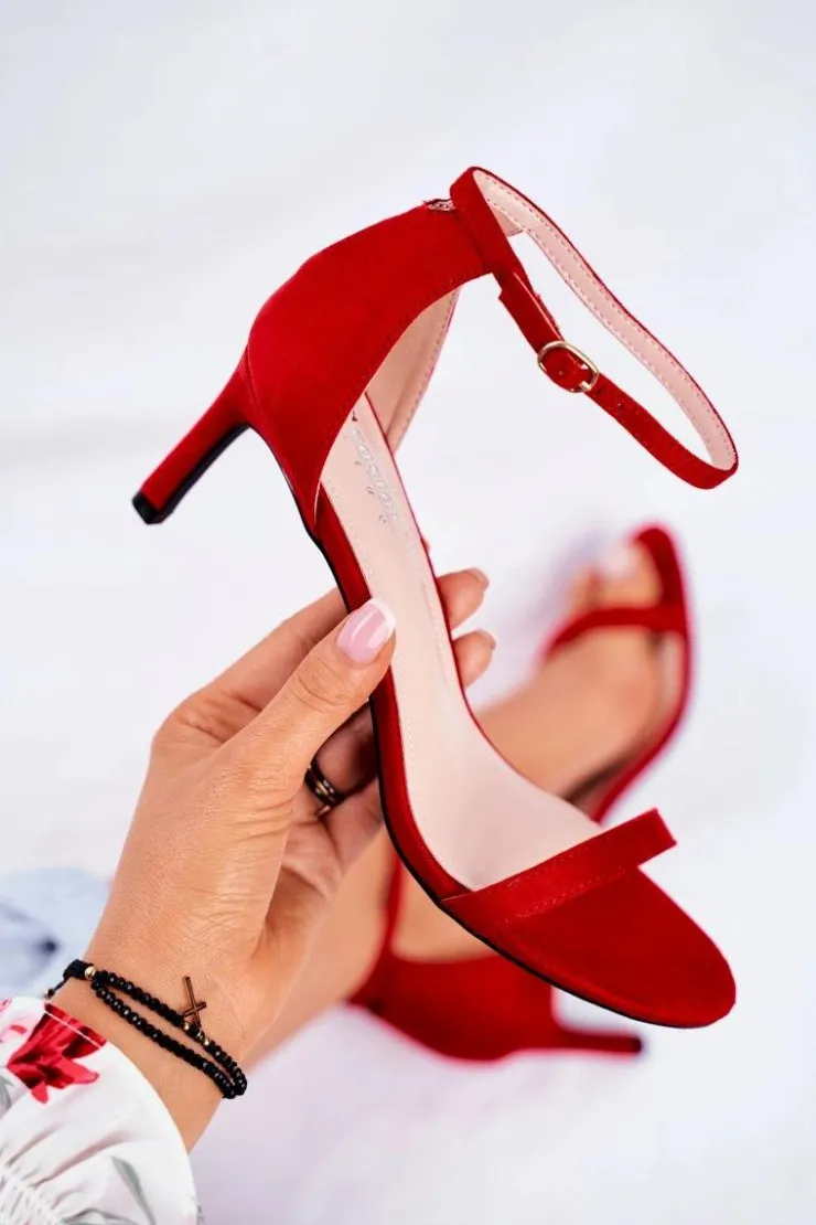 Damskie Boto Sandały Damskie Na Szpilce Klasyczne Czerwone Mintore