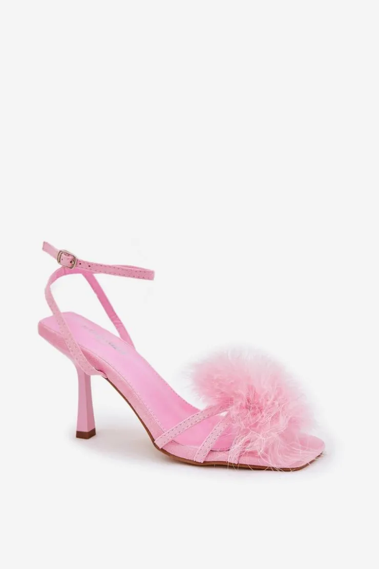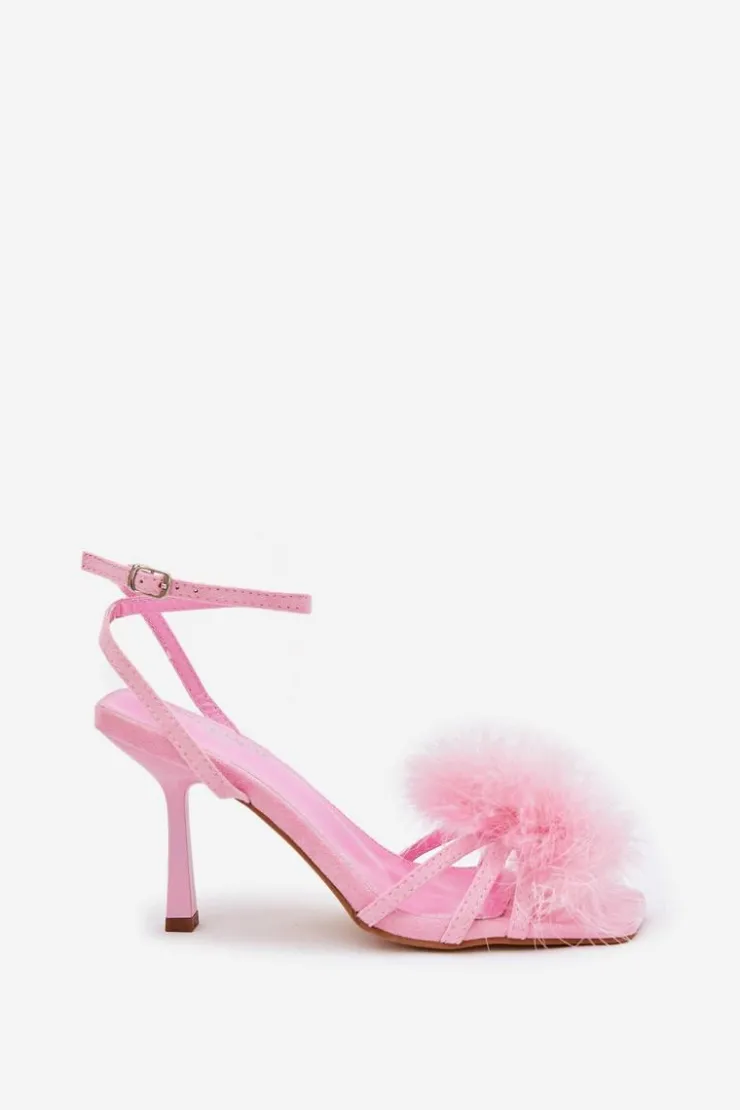 Eleganckie damskie sandały z eko zamszu, doskonałe na specjalne okazje. Osadzone na szykownej szpilce, wyróżniają się subtelną ozdobą z piór z przodu, co nadaje im lekkości i wyrafinowanego charakteru. Regulowany pasek ze sprzączką umożliwia idealne dopasowanie do stopy. To unikalny wybór, który doskonale dopełni wieczorowe i koktajlowe kreacje, przyciągając wzrok swoim niepowtarzalnym wyglądem. Przy wyborze rozmiaru prosimy sugerować się tabelą rozmiarów.