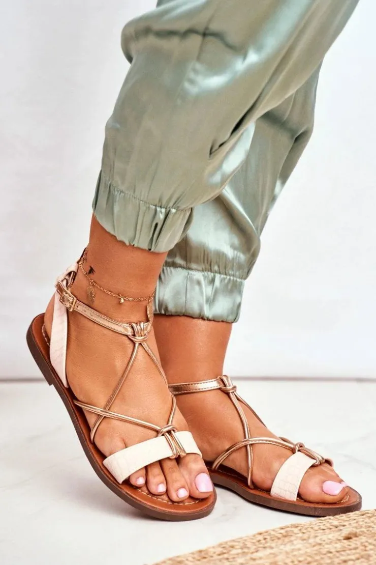 Damskie Boto Sandały Damskie Płaskie Różowe Alison