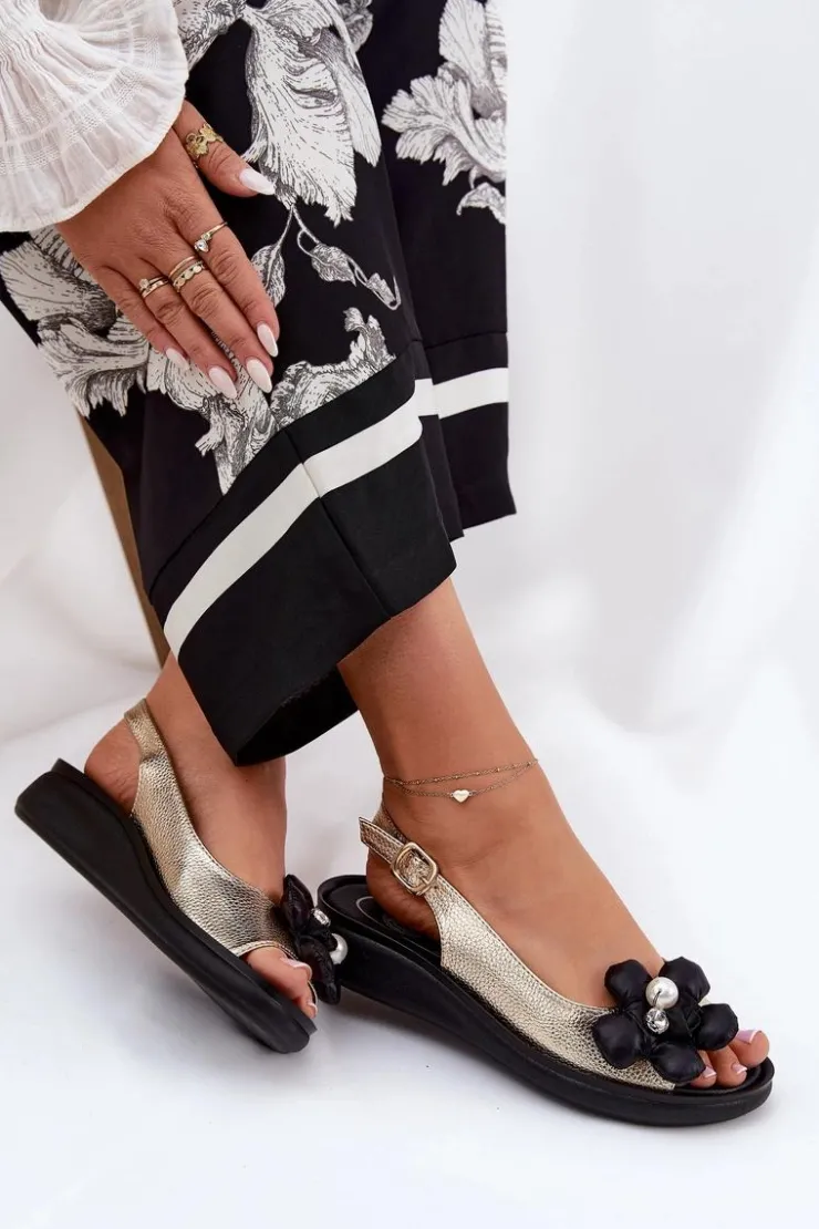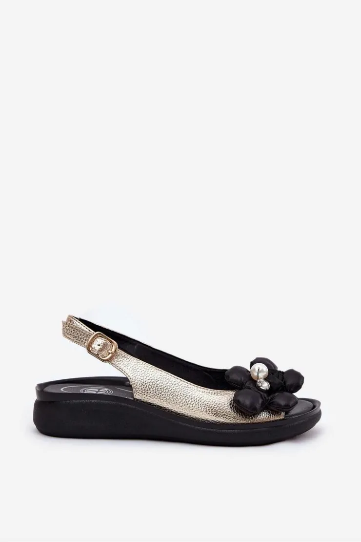 Sandały damskie marki Jezzi. Wykonane z wysokiej jakości eko skóry. Osadzone na delikatnym koturnie, zapewniają stabilność i komfort podczas noszenia. Model ten wyróżnia materiałowy, ozdobny kwiat, który nadaje wyjątkowego uroku. Zapinane na regulowany pasek ze sprzączką, gwarantują idealne dopasowanie do stopy. Ten elegancki fason doskonale dopełni wiele stylizacji z sukienkami i spodniami. Koniecznie powinnaś je mieć! Przy wyborze rozmiaru prosimy sugerować się tabelą rozmiarów.