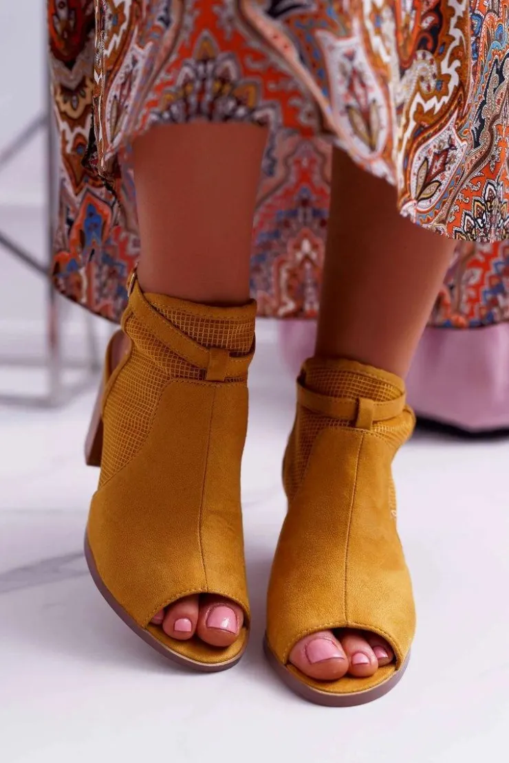 Damskie Boto Sandały Damskie Zamszowe Żółte Thido
