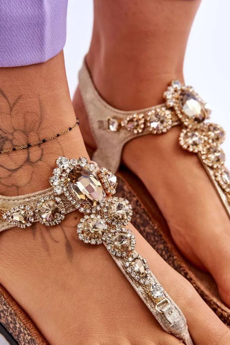Damskie Boto Sandały Japonki Na Korkowej Platformie Złote Naomi