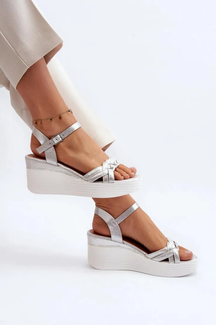 Sandały damskie to idealny wybór do letnich stylizacji. Model ten posiada zapinanie na regulowany pasek ze sprzączką, który zapewni odpowiednie dopasowanie. Obcas obcas w formie koturnu i platforma będą gwarantować stabilność i wygodę. Dodatkowo eko skórzana wkładka zapewni komfort nawet podczas długiego noszenia. Przy wyborze rozmiaru prosimy sugerować się tabelą rozmiarów.