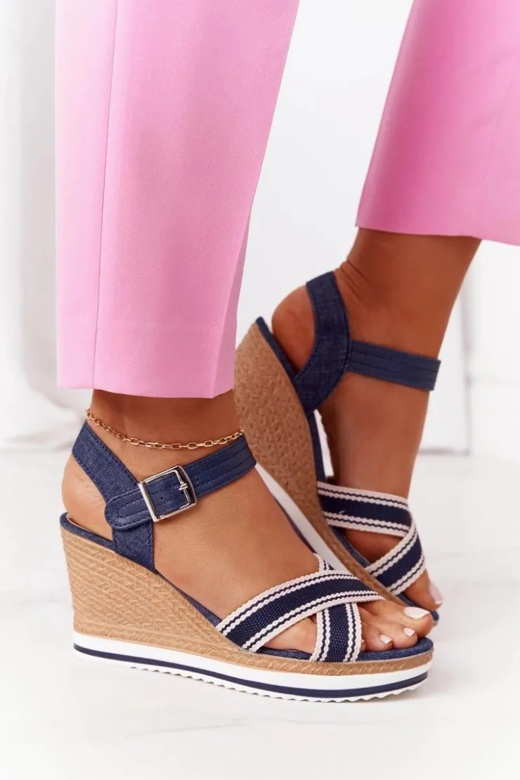 Piękne oraz wygodne sandały na koturnie wykonane z połączenia eko skóry, oraz tkaniny. Buty posiadają miękką wkładkę ze skóry ekologicznej. Modny fason w marynarskim stylu urozmaici Twoją letnią garderobę! Koniecznie sprawdź całą naszą kolekcję damskich sandałów. Przy wyborze rozmiaru prosimy sugerować się tabelą rozmiarów.