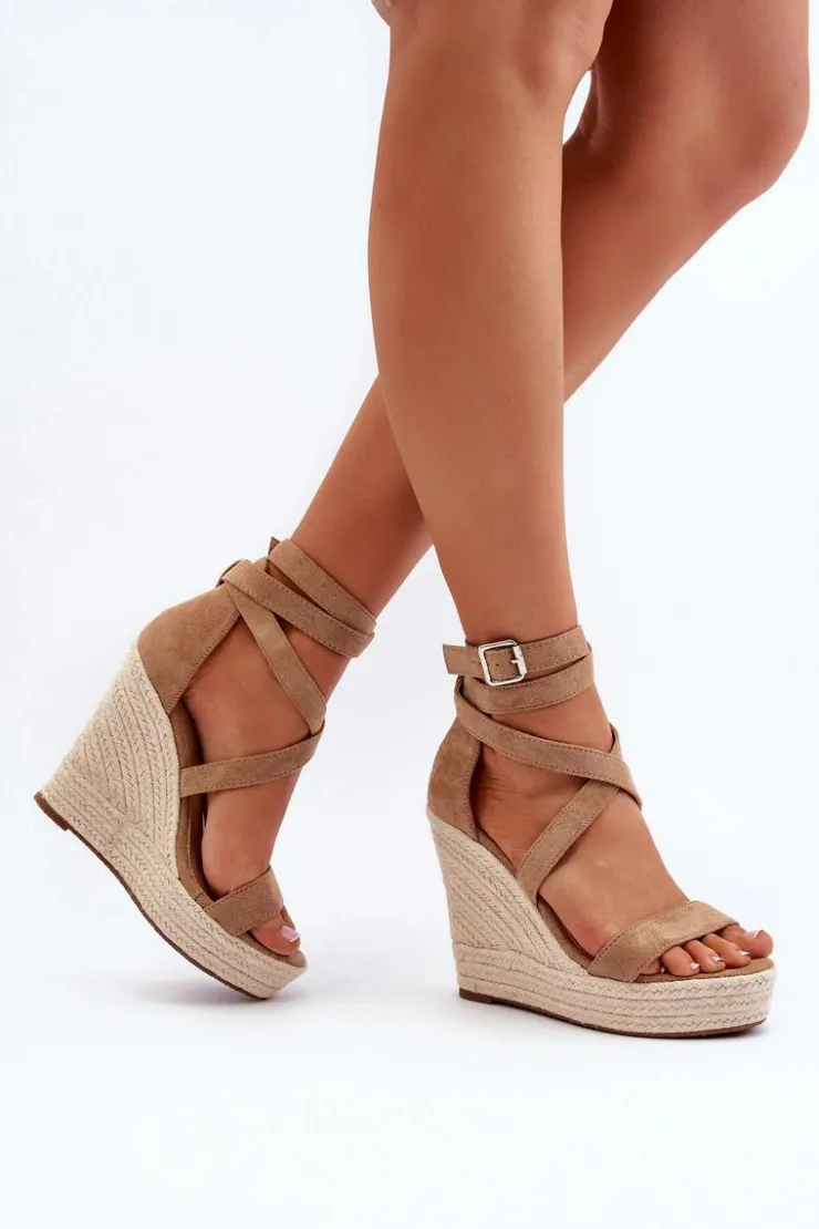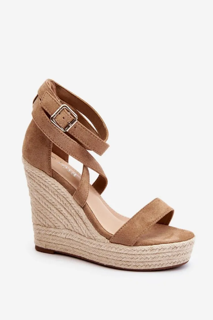 Sandały damskie wykonane z eko zamszu. Osadzone na koturnie i platforma z jutową plecionką. Zapinane na regulowany pasek ze sprzączką. Model ten to doskonałe rozwiązanie dla osób poszukujących obuwia, które łączy wygodę i elegancję, szczególnie podczas długich letnich spacerów! Przy wyborze rozmiaru prosimy sugerować się tabelą rozmiarów.
