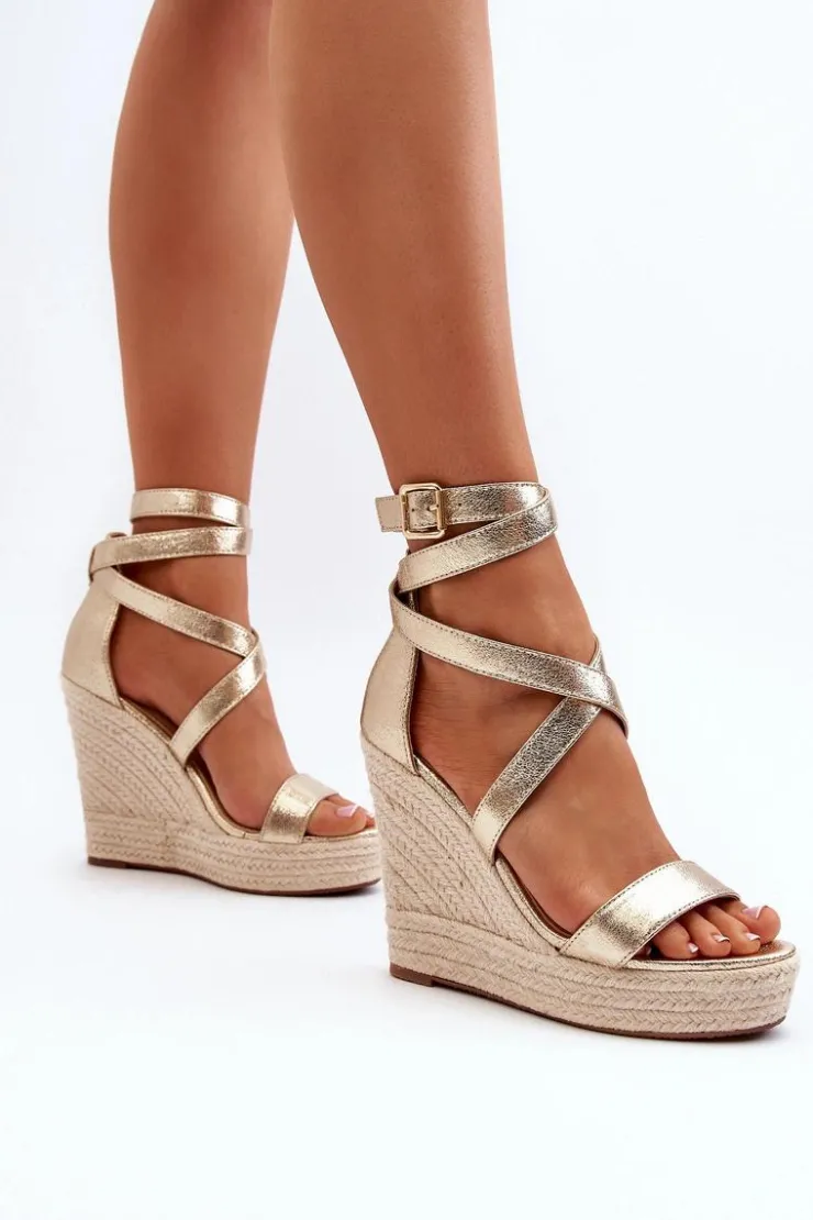 Sandały damskie wykonane z eko skóry. Osadzone na koturnie i platforma z jutową plecionką. Zapinane na regulowany pasek ze sprzączką. Model ten to doskonałe rozwiązanie dla osób poszukujących obuwia, które łączy wygodę i elegancję, szczególnie podczas długich letnich spacerów! Przy wyborze rozmiaru prosimy sugerować się tabelą rozmiarów.
