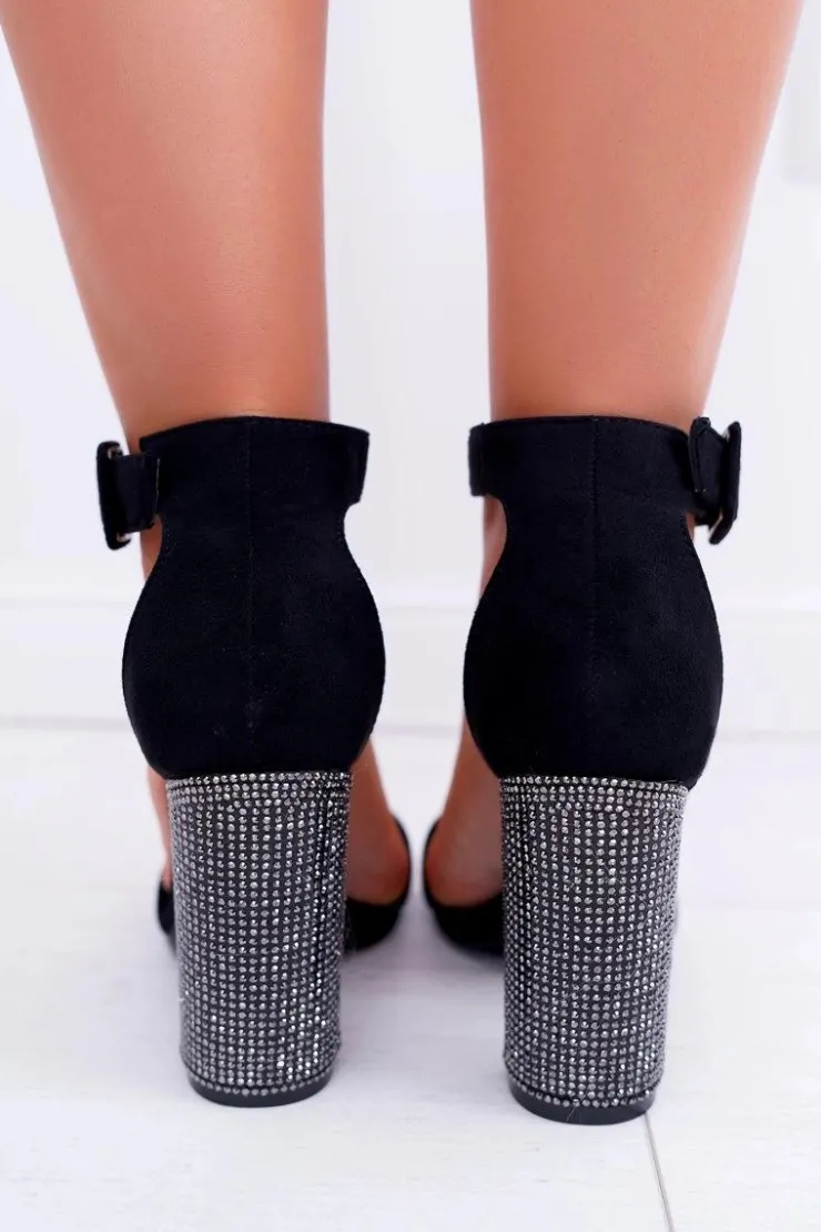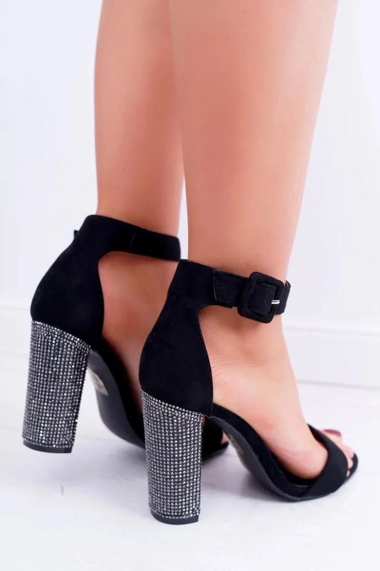 Damskie Boto Sandały Na Słupku Z Cyrkoniami Lu Boo Czarne