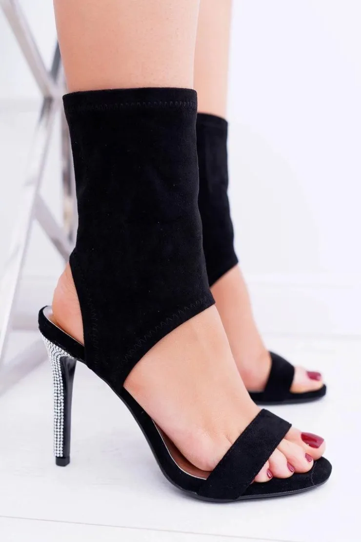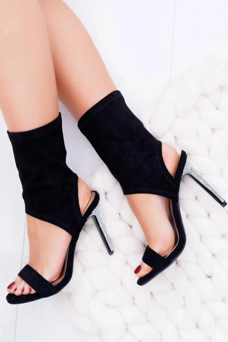 Damskie Boto Sandały Na Szpilce Z Cyrkoniami Lu Boo Czarne