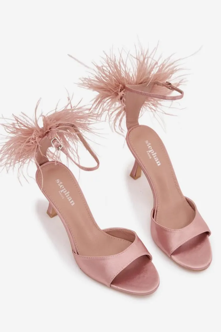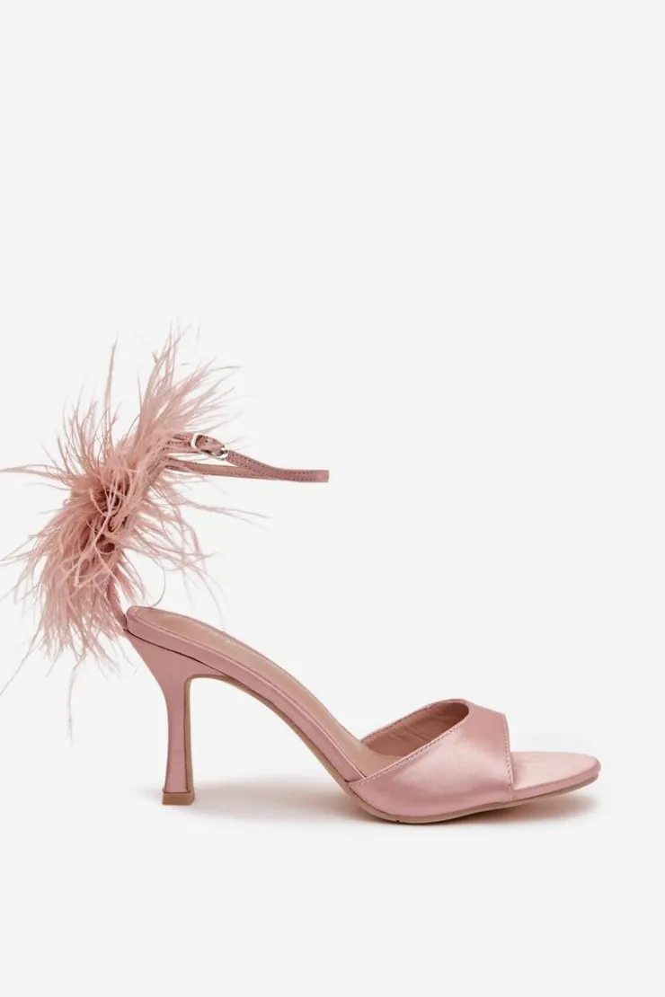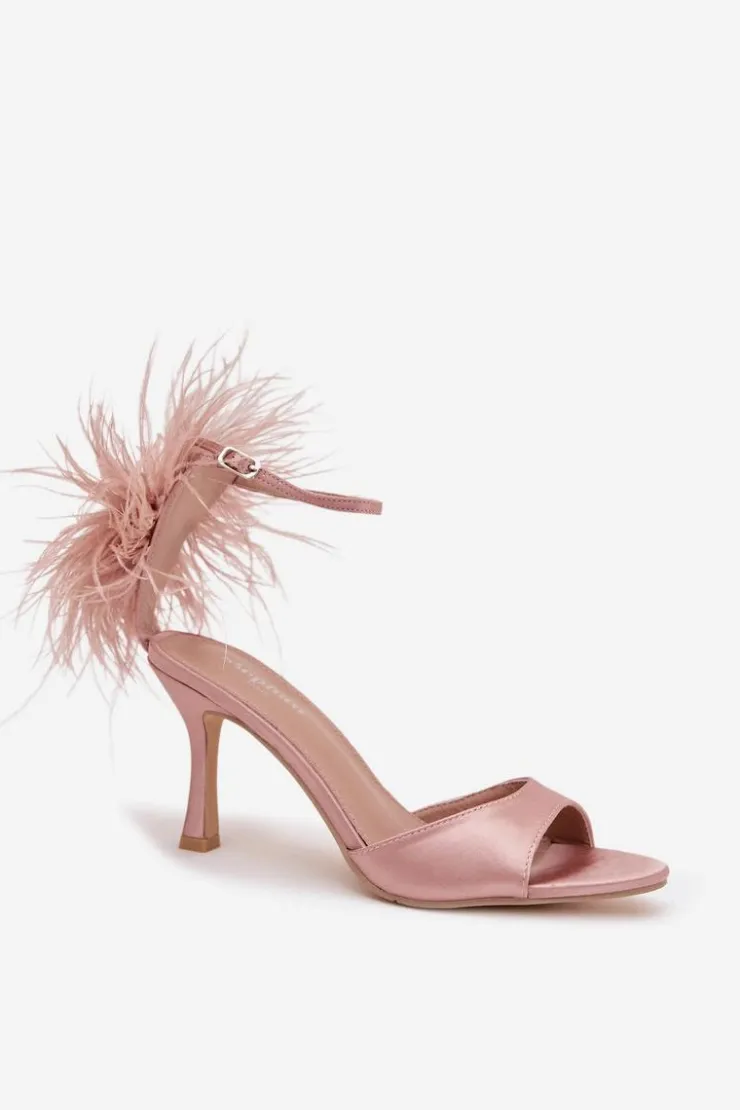 Damskie Boto Sandały Na Szpilce Z Piórami Brudny Róż Caelina