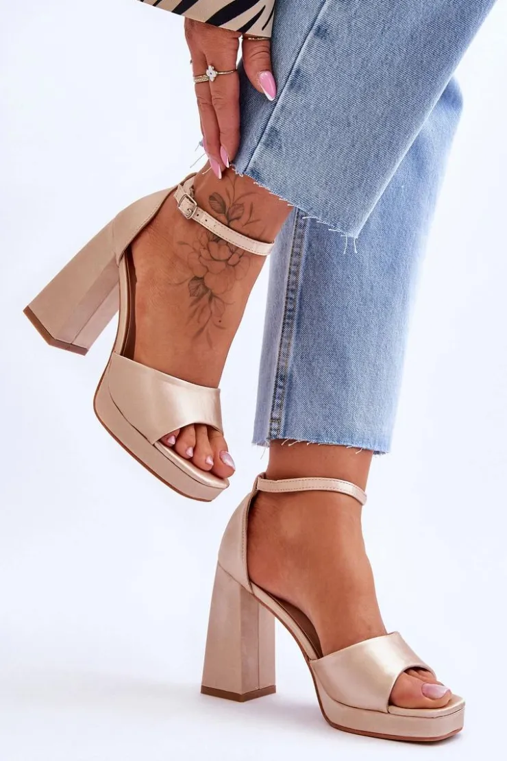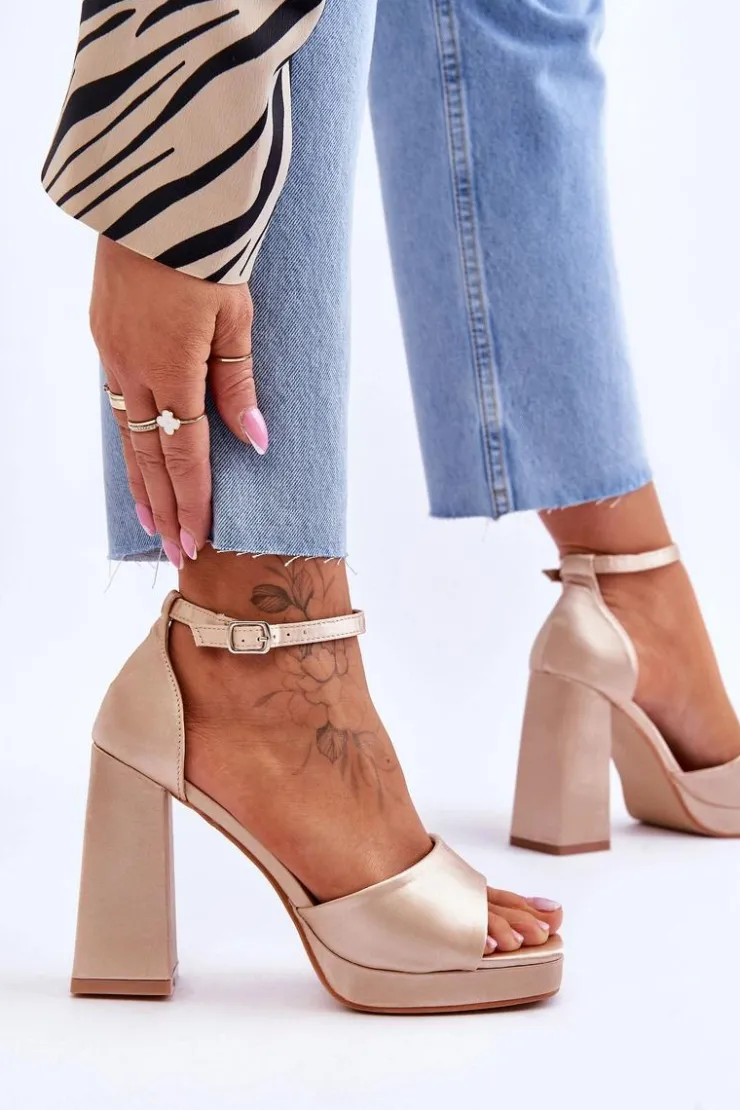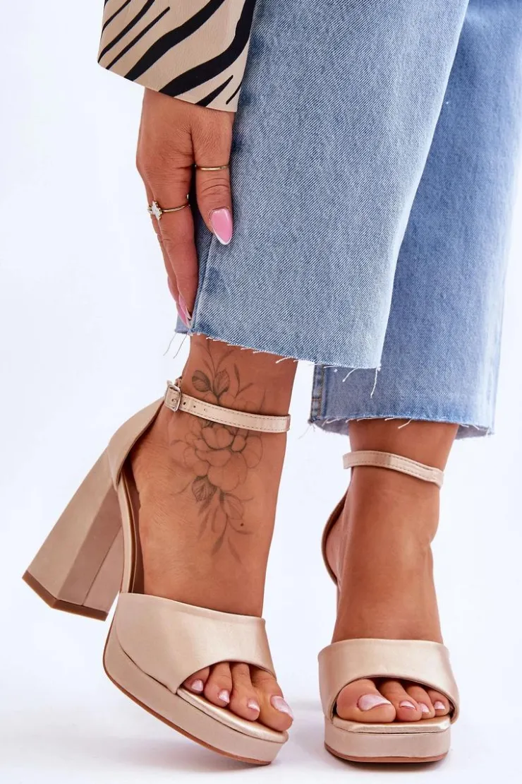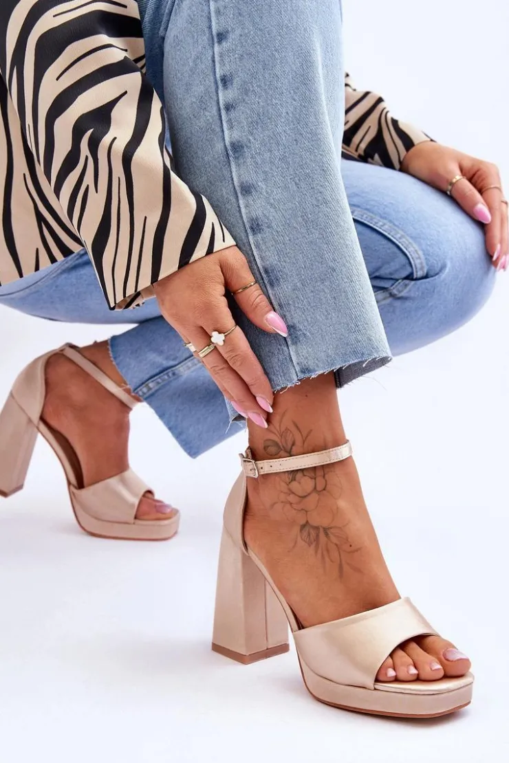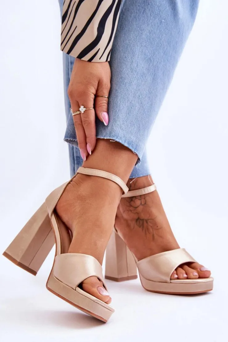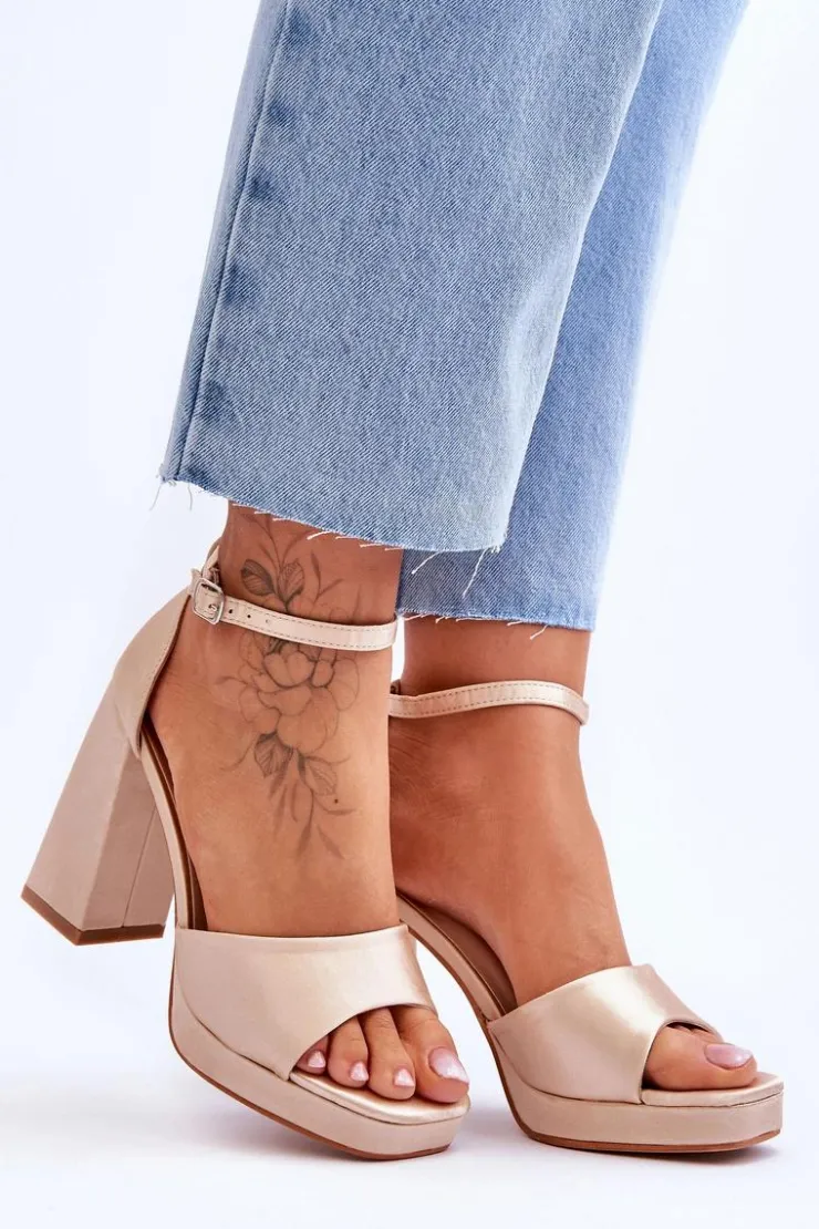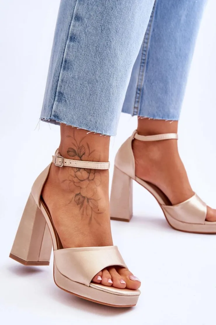Damskie Boto Satynowe Sandałki Na Masywnym Obcasie Beżowe Eternity