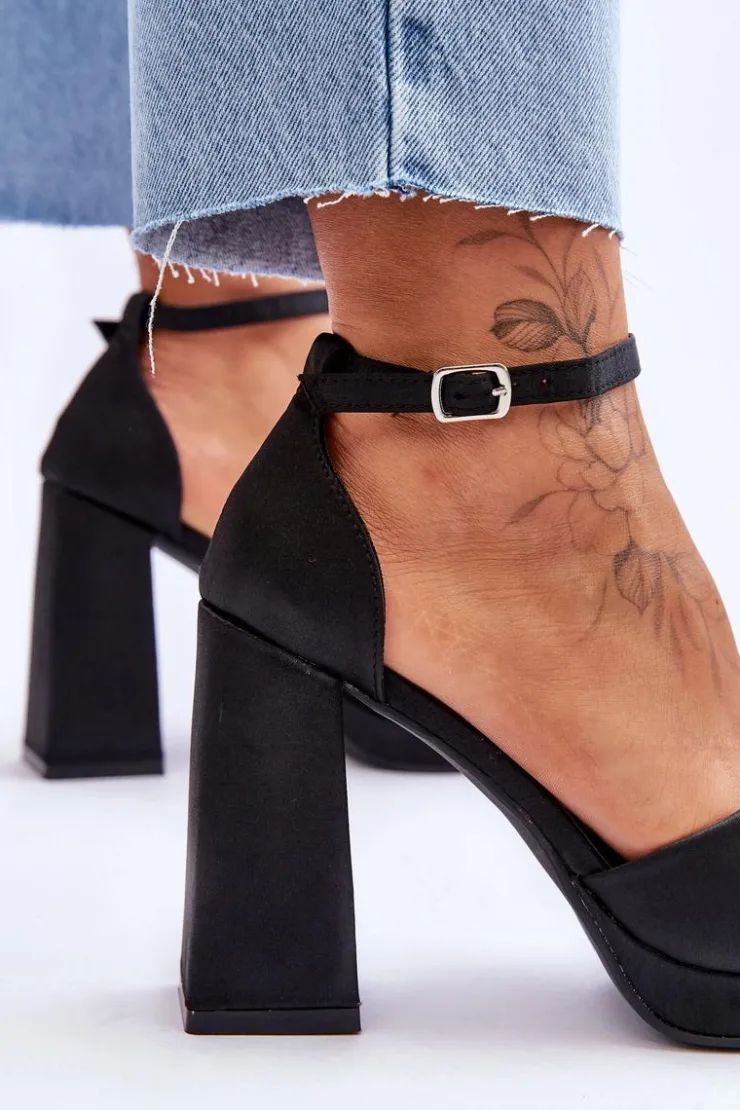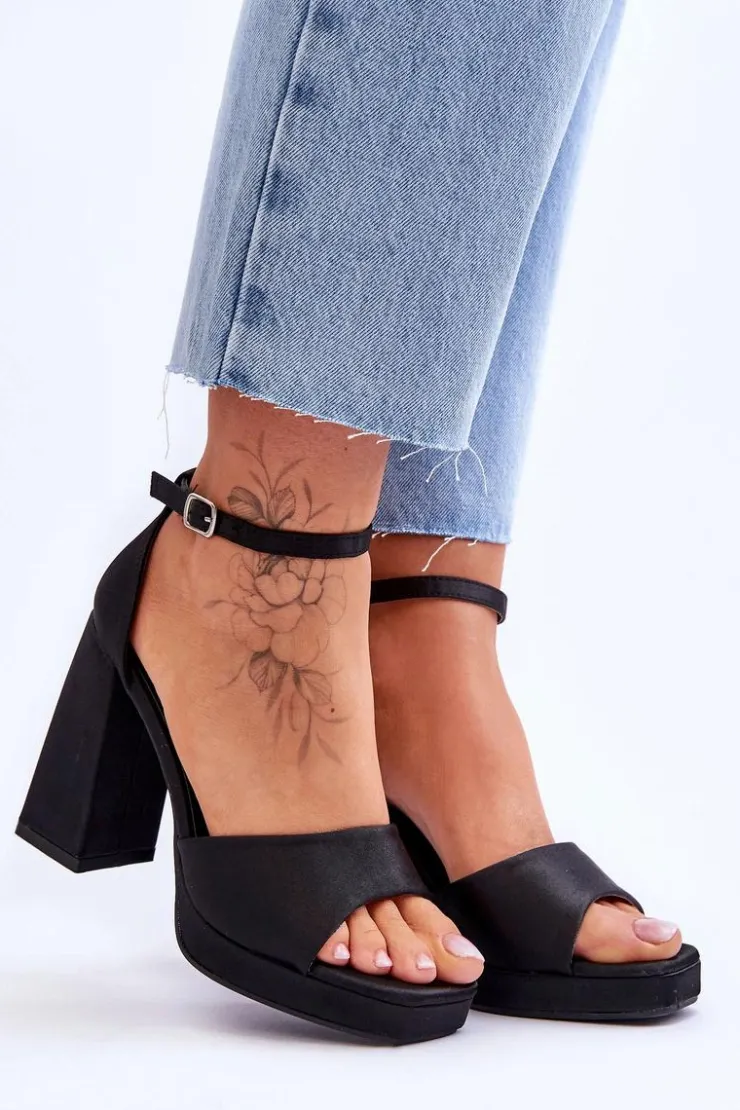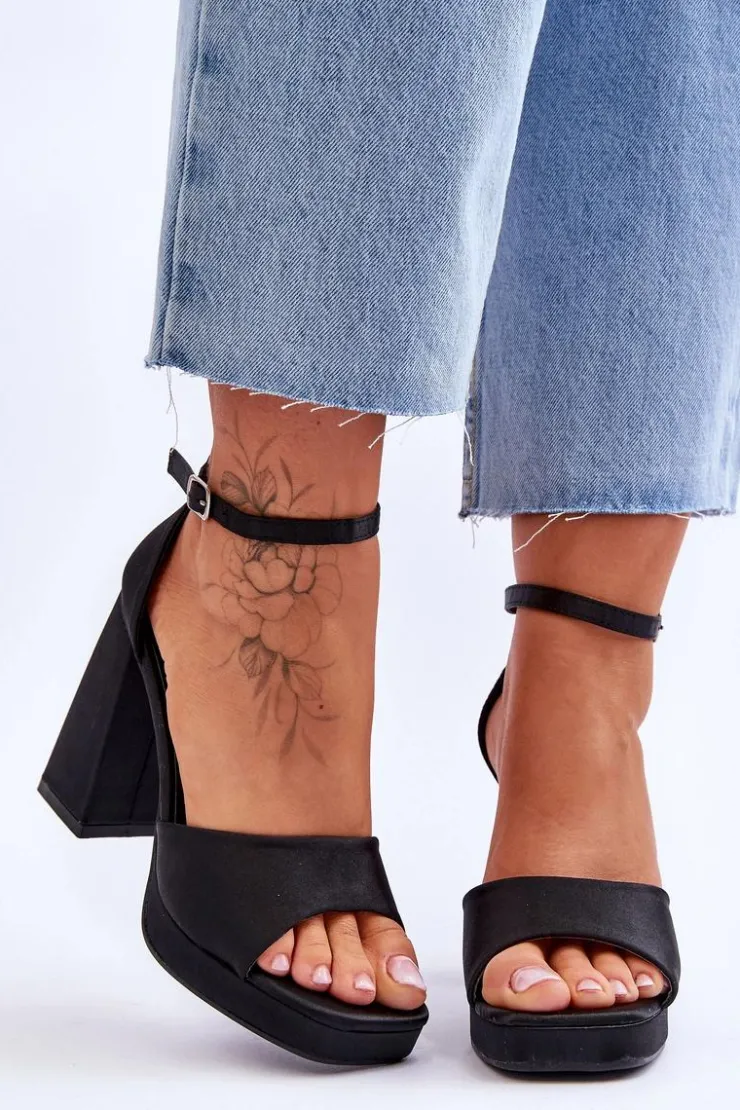 Te cudowne sandałki idealnie sprawdzą się na różnego rodzaju uroczystości! Wykonane z materiału tekstylnego imitującego satynę. Posiadają z przodu paseczek przytrzymujący stopę oraz usztywniany zapiętek. Zapinane na regulowany pasek ze sprzączką. Delikatna platforma oraz masywny obcas w kształcie kwadratowego słupka. Miękka wkładka została wykonana z eko skóry. Przy wyborze rozmiaru prosimy kierować tabelą rozmiarów.