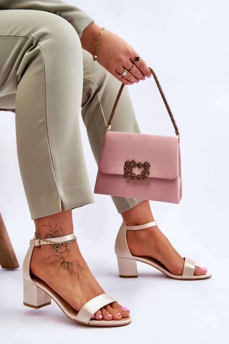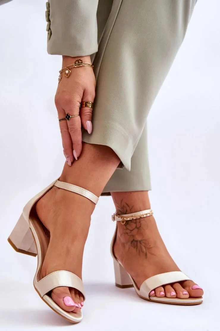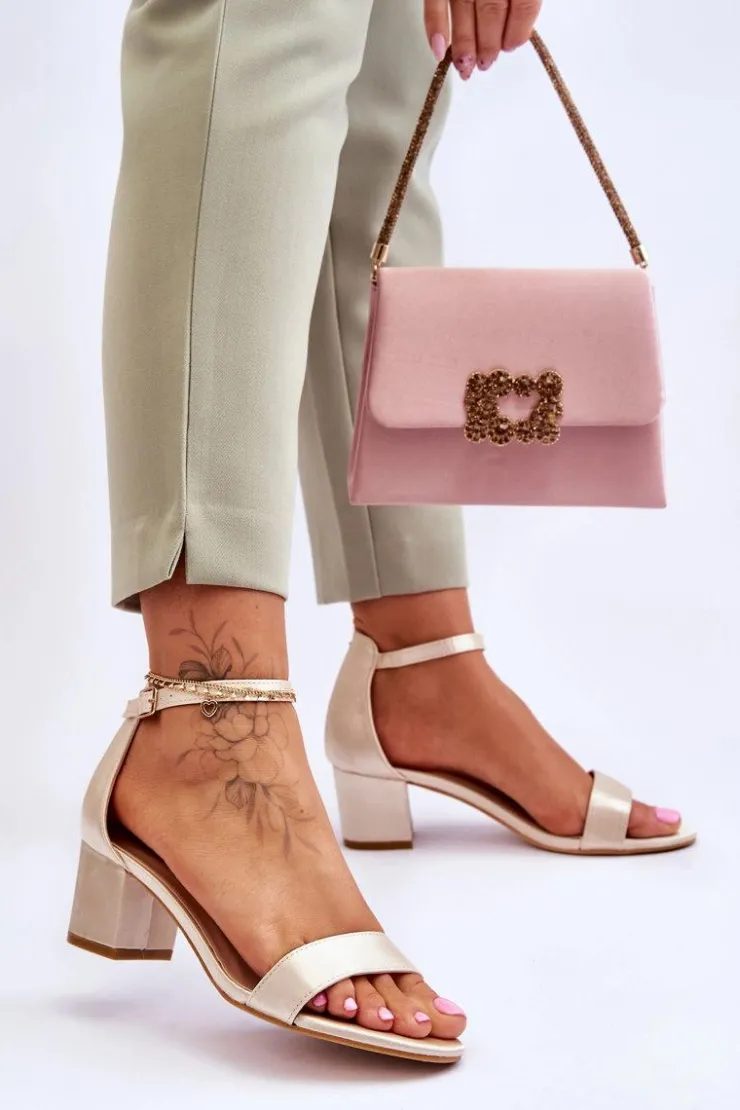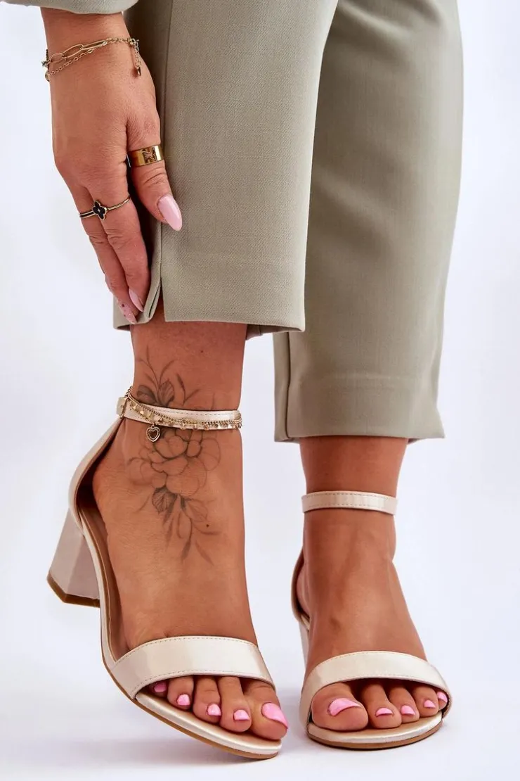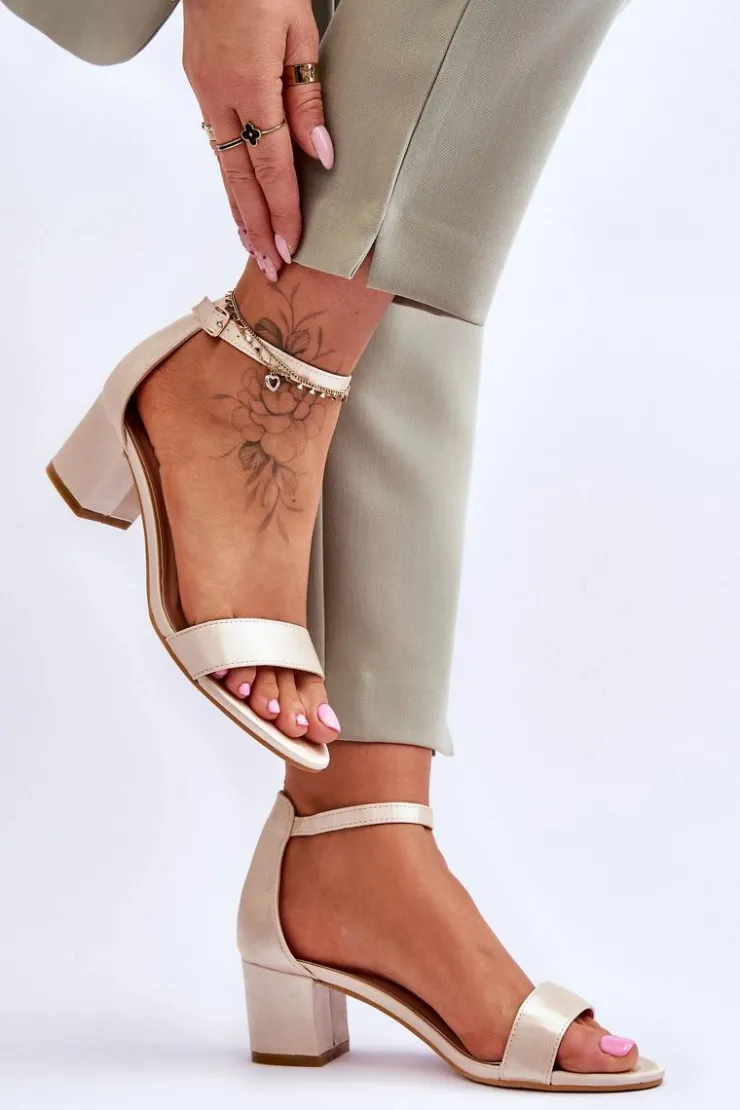 Damskie Boto Satynowe Sandały Na Niskim Obcasie Beżowe Juliet