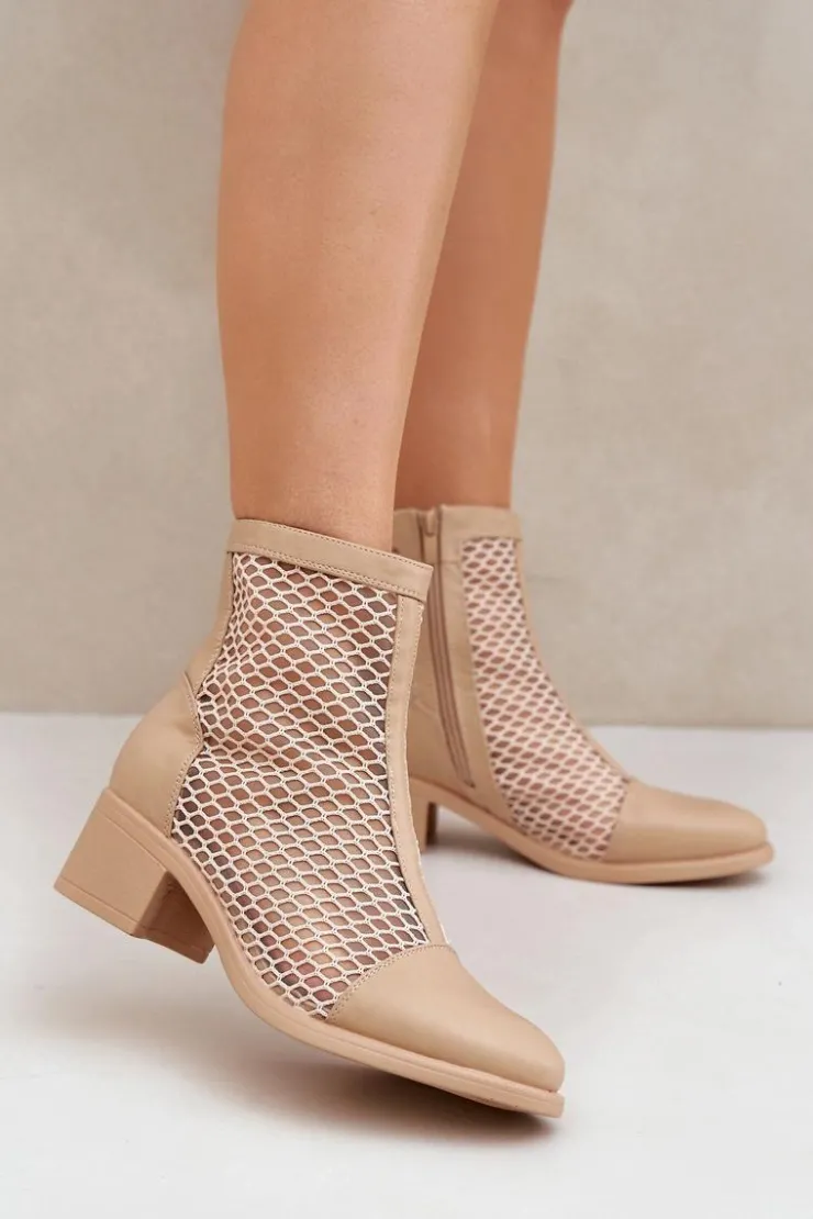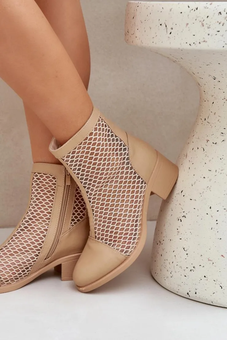 Siateczkowe botki damskie to modna i przewiewna propozycja na cieplejsze dni. Osadzone na niskim obcasie, zapewniają wygodę i stabilność, a zaokrąglone noski gwarantują komfort noszenia. Zapinane na zamek, co ułatwia ich zakładanie i zdejmowanie. Siateczkowa cholewka dodaje lekkości i unikalnego charakteru, sprawiając, że są idealnym wyborem do casualowych i bardziej eleganckich stylizacji. Te botki łączą funkcjonalność z modnym wyglądem, świetnie komponując się w wiosennych i letnich outfitach. Przy wyborze rozmiaru prosimy sugerować się tabelą rozmiarów.