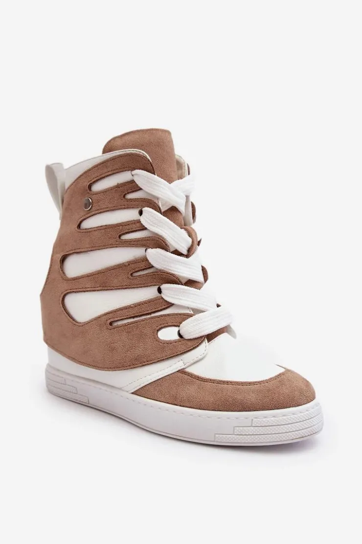 Damskie Boto Skórzane Botki Na Koturnie Sznurowane Beżowe Amria