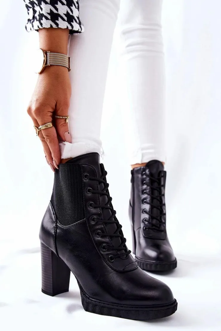 Botki posiadają ściągacz, który pozwoli na dopasowanie do nogi. Klasyczny fason idealnie będzie pasować do wielu stylizacji. Obcas w postaci słupka. Buty posiadają wiązanie oraz suwak. W środku posiadają ocieplenie w postaci koca obuwniczego. Sprawdź także pozostałą ofertę botków !