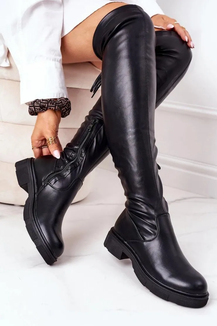 Kozaki za kolano wykonane z miękkiej skóry ekologicznej. Wszyty suwak ułatwi zakładanie.