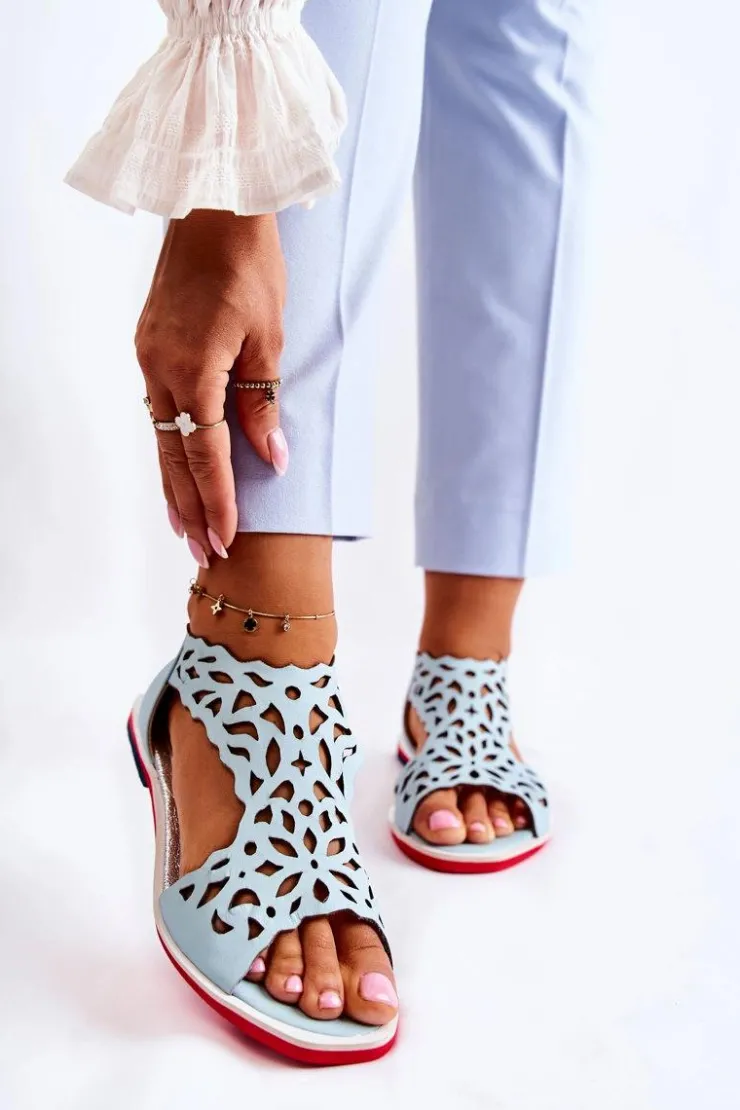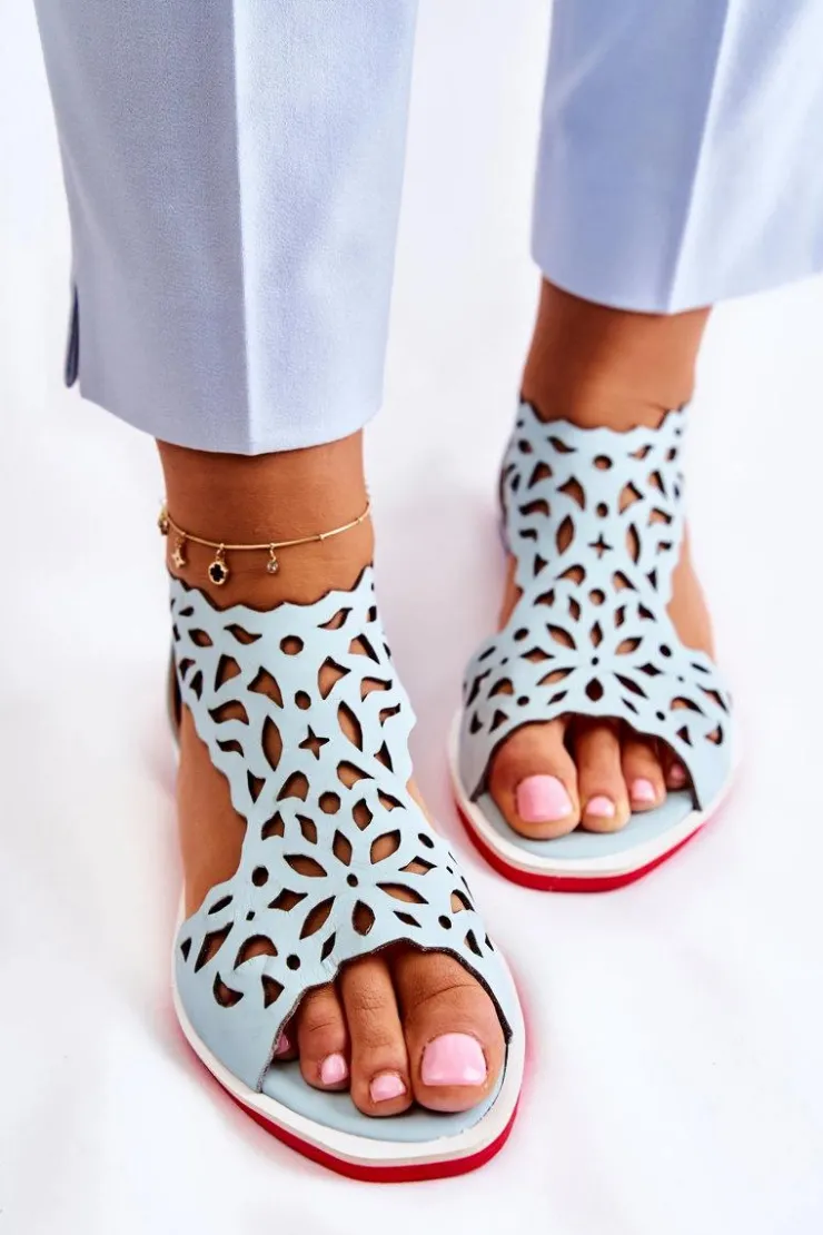 Damskie sandały zostały wykonane z naturalnej skóry w ażurowy wzór. Z boku cholewki posiadają gumkę. Zapiętek usztywniany z suwakiem. Buty są osadzone na płaskim obcasie. Sandały posiadają odkryty nosek. Miękka wkładka została także wykonana z naturalnej skóry. Lekki i przewiewny fason świetnie sprawdzi się w upalne dni. Koniecznie powinnaś je mieć! Przy wyborze rozmiaru prosimy sugerować się tabelą rozmiarów.