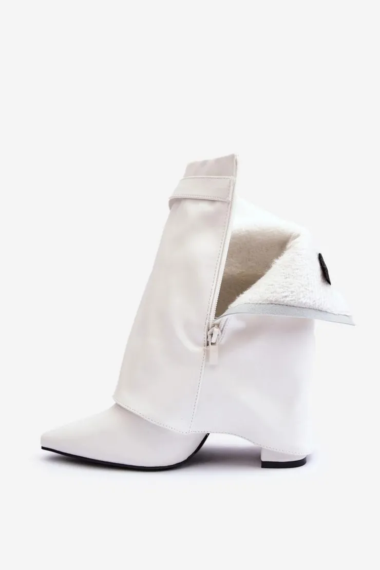 Stylowe kozaki z luźną cholewką do połowy łydki. Osadzone na obcasie w postaci słupka. Wnętrze ocieplone kocem obuwniczym. Model ten posiada cholewkę zachodzącą na koturn, co wyróżnia to obuwie na tle innych kozaków. Zapiętek jest usztywniony. Przy wyborze rozmiaru prosimy sugerować się tabelą rozmiarów.