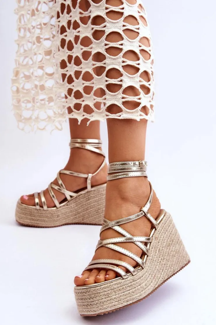 Idealne sandały na lato! Posiadają wysoki koturn oraz platformę ozdobione jutową plecionką. Posiadają odkryty, kwadratowy nosek. Sandałki są zapinane na długi, regulowany pasek ze sprzączką. Niezwykle miękka, wykonana z eko skóry wkładka jest bardzo wygodna w użytkowaniu nawet przez cały dzień. Te buty będą znakomitym dodatkiem do zwiewnej sukienki czy spódniczki. Przy wyborze rozmiaru prosimy kierować tabelą rozmiarów.