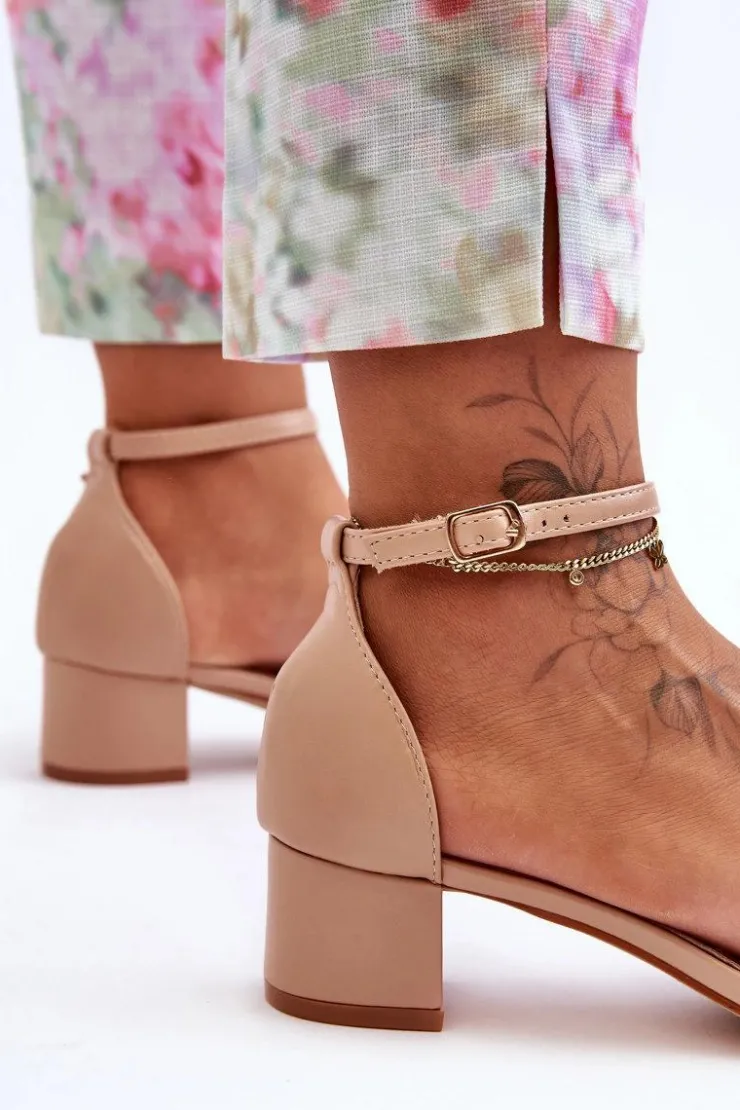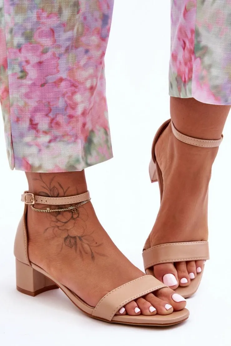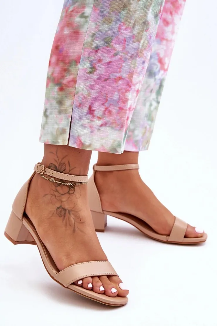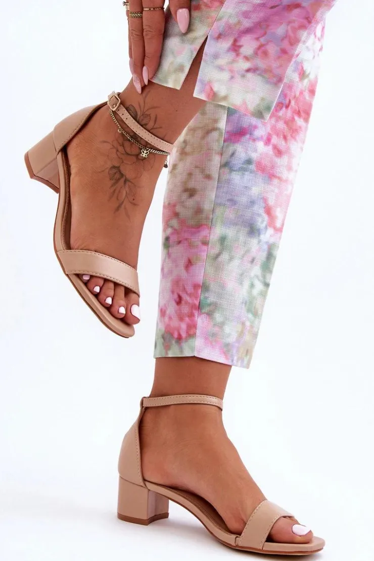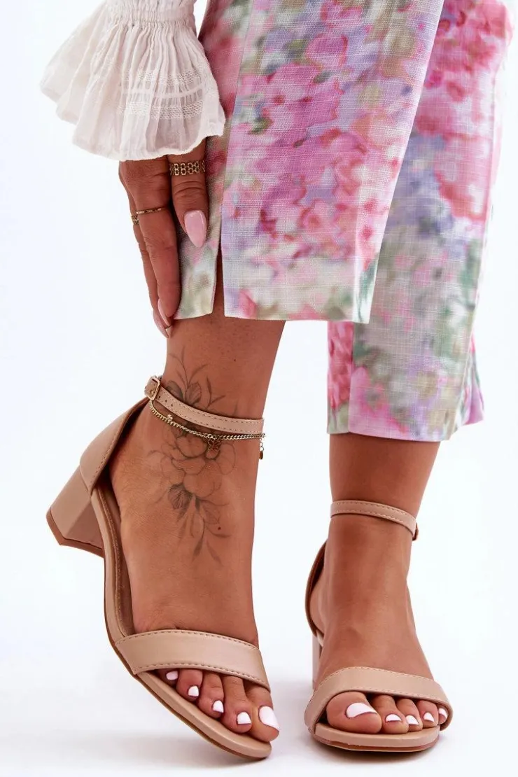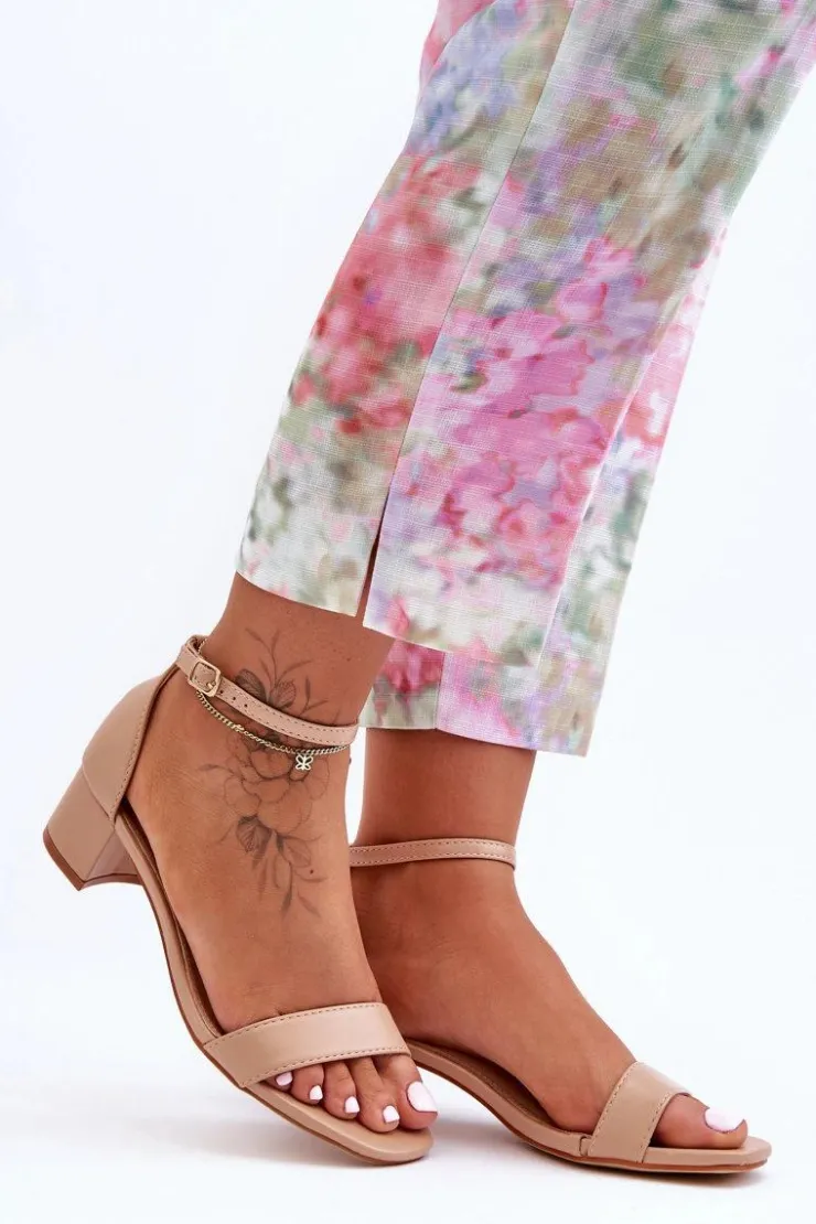 Damskie Boto Skórzane Sandałki Na Obcasie Gładkie Beżowe Inspire Me!